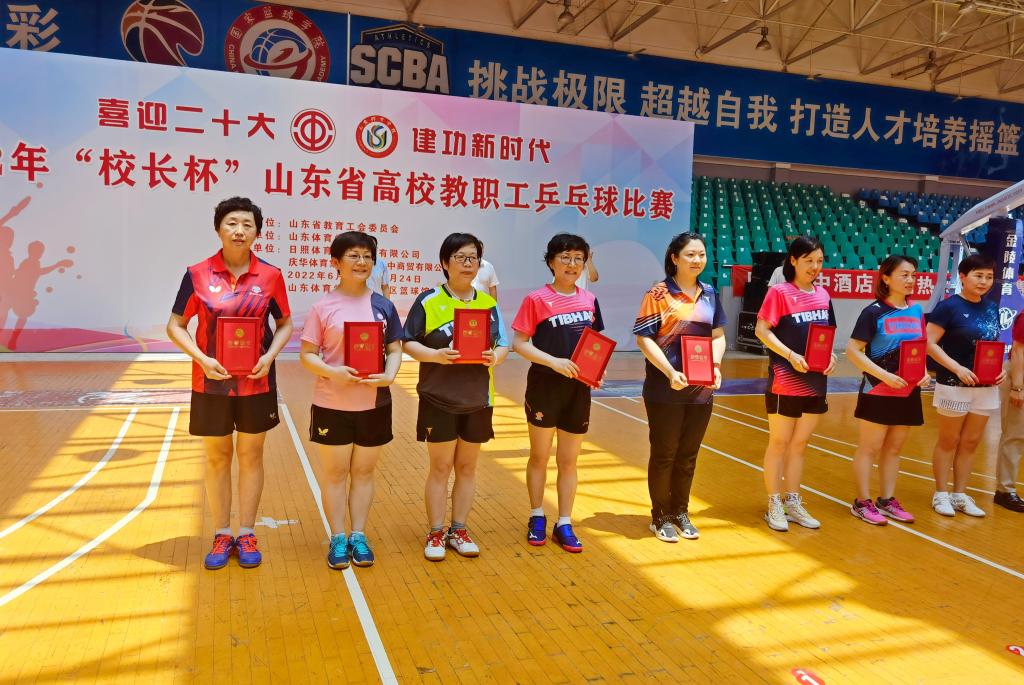 6月21-24日,“喜迎二十大 建功新时代”2022年“校长杯”山东省高校教职工乒乓球比赛在山东体育学院日照校区举行,来自全省63所高校的64支代表队,552名运动员、教练员、领队参加了比赛。beat365队员在比赛中团结协作、奋勇拼搏,以最饱满的精神和最佳的竞技状态赛出了水平、赛出了友谊,体现了beat365教职工团结拼搏、蓬勃向上的良好精神面貌。beat365首次闯入40岁以上女子组8强,同时beat365首次荣获“优秀组织奖”。