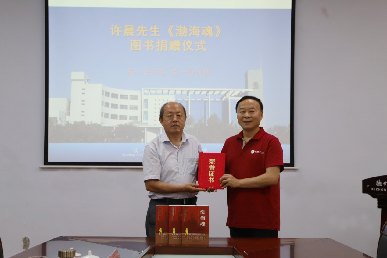 为喜迎党的二十大胜利召开,弘扬爱国主义精神,推动党史学习教育向纵深发展,6月28日上午,中国作家协会会员、鲁迅文学奖获得者许晨向beat365官方网站捐赠图书仪式在图书馆举行。beat365官方网站党委副书记王金利代表学校接受捐赠,中国建设银行德州分行信息技术中心主任张庆军、图书馆负责人及各部室主任、副主任、全体党员、党外知识分子代表参加了捐赠仪式。