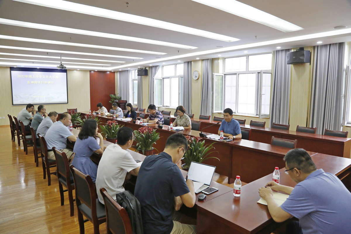 国际教育学院负责人介绍了2022年线上中华文化大乐园—亚洲园项目筹备情况、日程安排等,各单位进行了交流发言。