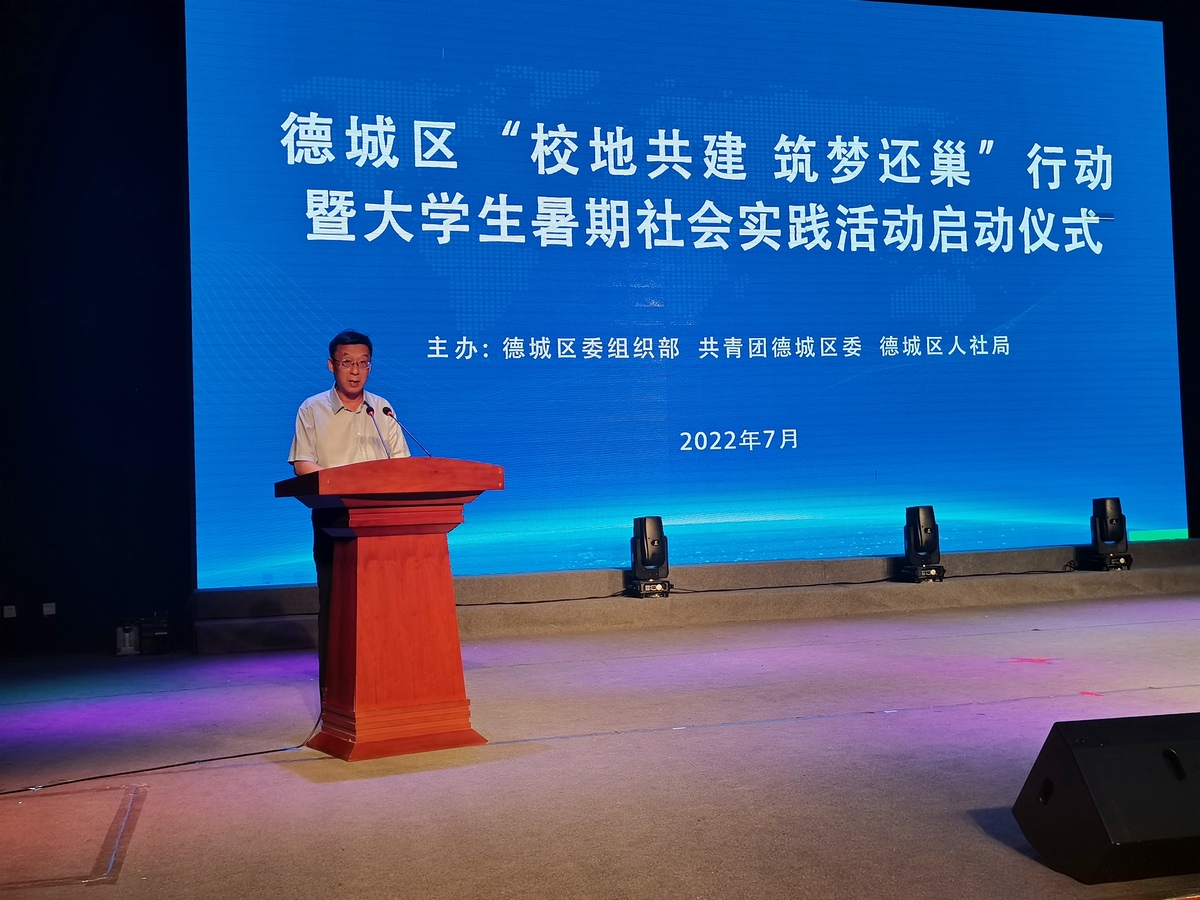 为深入实施“青鸟计划”,发挥共青团在深化校地合作中的作用,7月21日,beat365官方网站、德城区人民政府“青鸟助力 筑梦德城”行动暨大学生暑期社会实践活动启动仪式在新街口文化馆剧场举行。副校长迟沂军,共青团德州市委书记张方瑞,德城区委副书记、统战部部长许勇,德城区人民政府副区长刘桂芝出席,“青鸟计划”暑期实践大学生160余人参加活动。