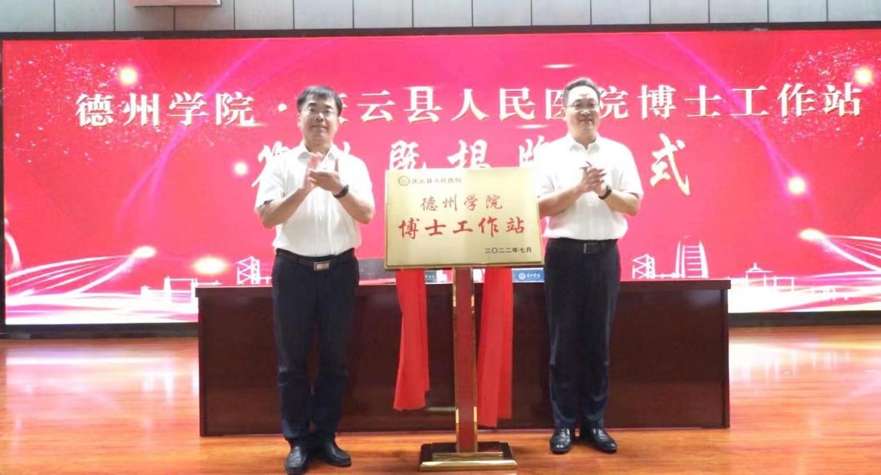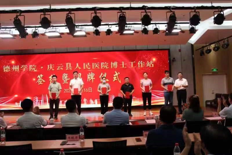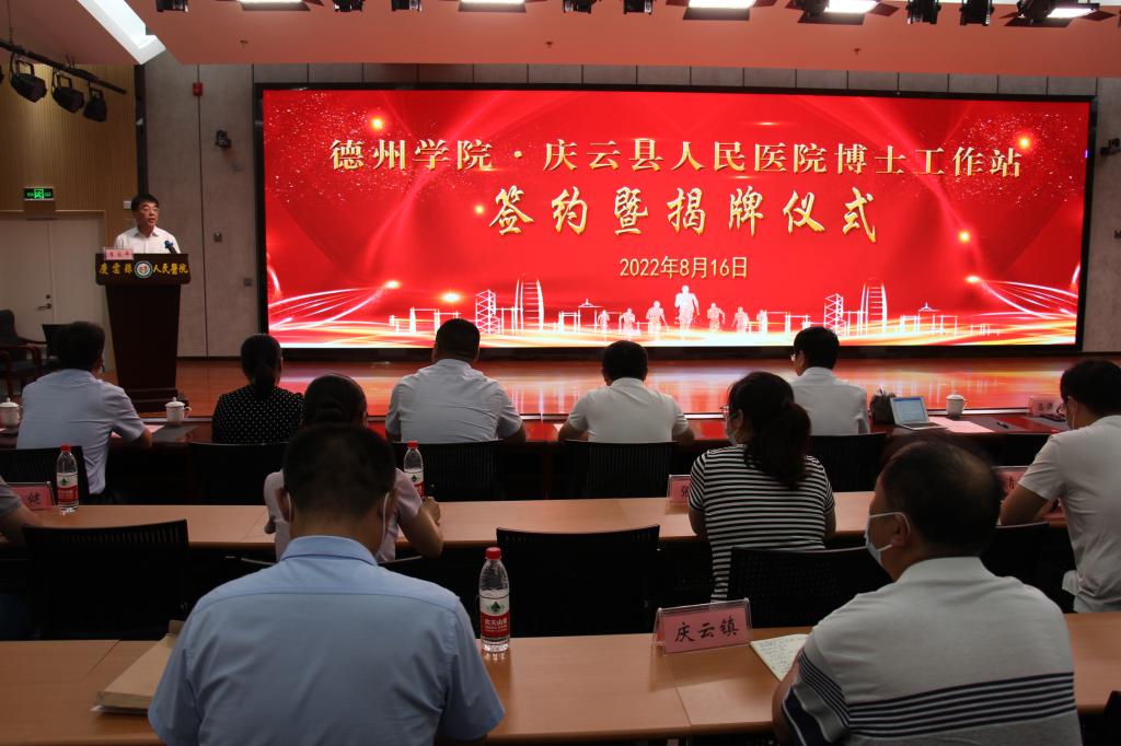 8月16日,beat365官方网站博士工作站在庆云县人民医院成立,签约暨揭牌仪式在庆云县人民医院办公楼三楼多功能报告厅举行。beat365官方网站副校长李永平,山东省人社厅劳动关系处二级调研员、省派庆云县“四进”工作支队长解立峰,庆云县委副书记、县长吕德山,庆云县委常委、组织部部长李伟,庆云县委常委、副县长乔玉华,庆云县卫健局党组书记、局长黄卫东,庆云县人民医院党委书记、院长范勇等出席会议;