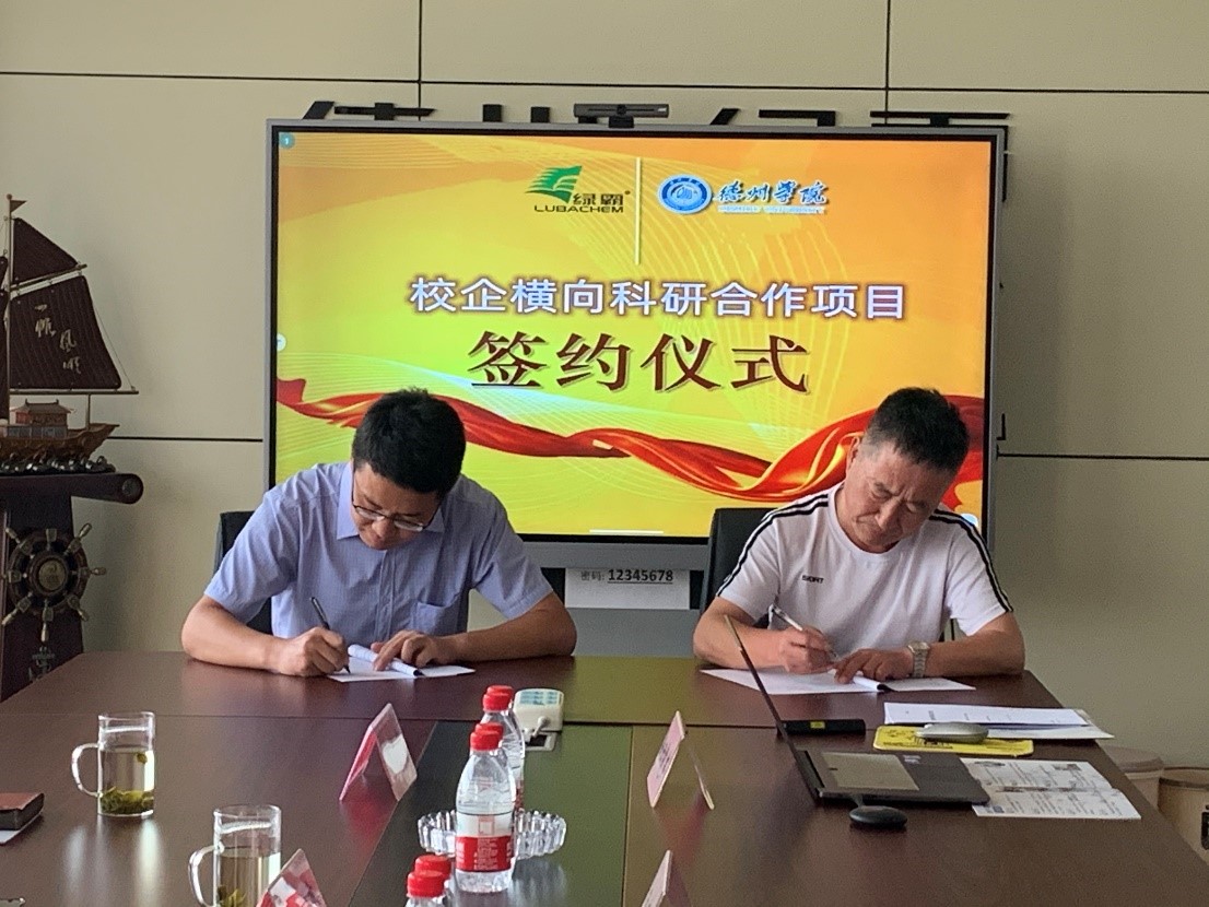在前期联合获批德州市绿色化工与环境催化工程研究中心的基础上,为强化科研平台和研发团队建设,推进校城融合。8月22日,化学化工学院与德州绿霸精细化工有限公司举行技术合作签约仪式。德州绿霸精细化工有限公司董事长索存川、总经理张亮、常务副总经理孙在臣、总工程师田俊杰和化学化工学院主要负责人及博士参加。