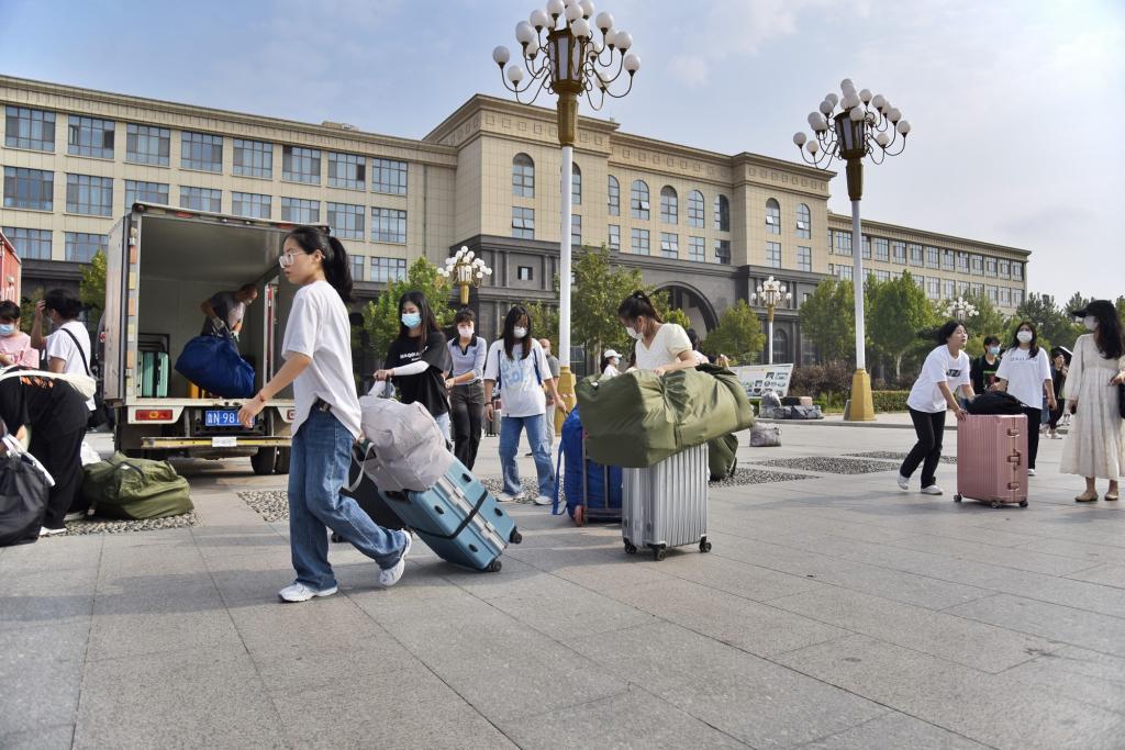 各学院支教生齐聚腾飞广场,他们拖拽着厚重的行囊,与朋友和老师挥手告别后走上大巴车,开启本学期支教生涯。