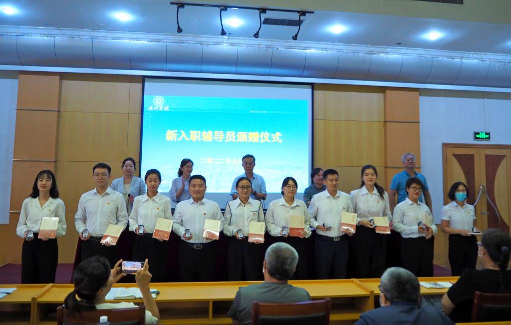9月13日的新入职辅导员结训仪式上,迟校长和学工部门负责人为2022年新入职辅导员颁发校徽并赠送书籍《顶天立地谈信仰》。希望新入职辅导员通过阅读学习这本书,给青年大学生谈信仰、上党课、做思想政治工作时,学会用故事的方式来传达深意,表露真情感,以此感染学生、影响学生从而教育引导学生。希望每一位辅导员切实提升政治素养,做学生成长的“引路人”,努力成为学生为学、为事、为人的典范。