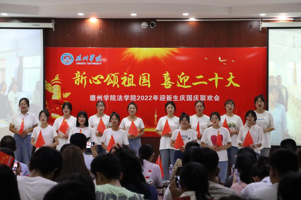 会后,师生文艺联欢庆国庆。声情并茂、富有感染力的配乐诗朗诵《华夏之秋》,带领大家“向着繁荣盛世启航”;院歌《法学赤子心》的优美韵律,唱出了法学学子对未来的期盼和憧憬;一场活力四射的青春舞曲,热情洋溢、生机无限;2022级新生书法展示,入木三分的笔墨下浸透着百年党史的红色力量。最后,全场动情演唱《我和我的祖国》,表达对祖国母亲73岁生日的深深祝福之情,展现了全体师生浓浓的家国情怀。(法学院)