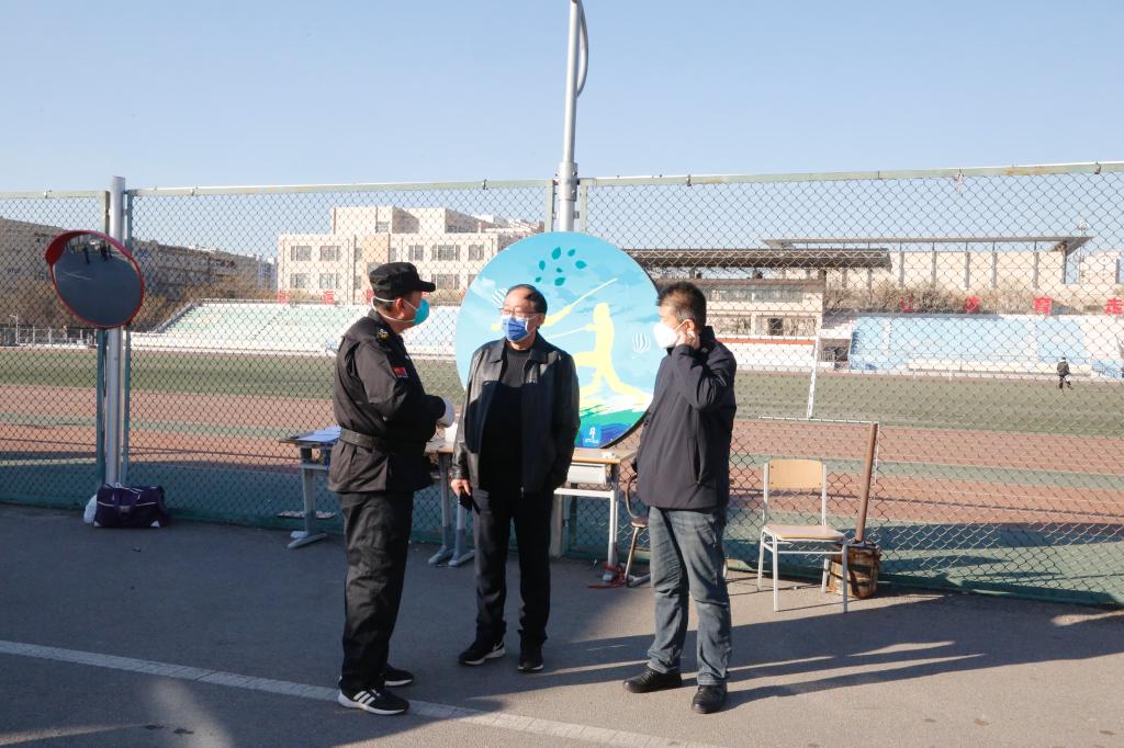在走访过程中,张存峰与坚守一线的安保人员亲切交流,详细了解各岗位疫情防控值班值守、校门管控、校园巡逻等情况。张存峰表示,疫情阻击战打响后,保卫处全体保安人员迅速行动,冲锋在前,敢于担当,舍弃小家为大家,长期坚守岗位,为学校疫情防控筑起安全屏障。他代表学校对大家的辛苦付出表示感谢,并叮嘱大家要注意防寒保暖,做好个人防护,同时希望大家继续再接再厉,强化责任担当,以高度责任感和使命感切实保障广大师生安全,为校园安全稳定作出更大的贡献。