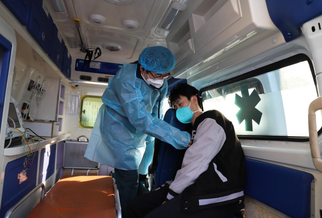 医疗组通知转运组,转运组立即联系属地定点医院-市中医院,激活绿色通道,鉴于该生行动不便、意识模糊,定点医院安排急救车到健康驿站门口。