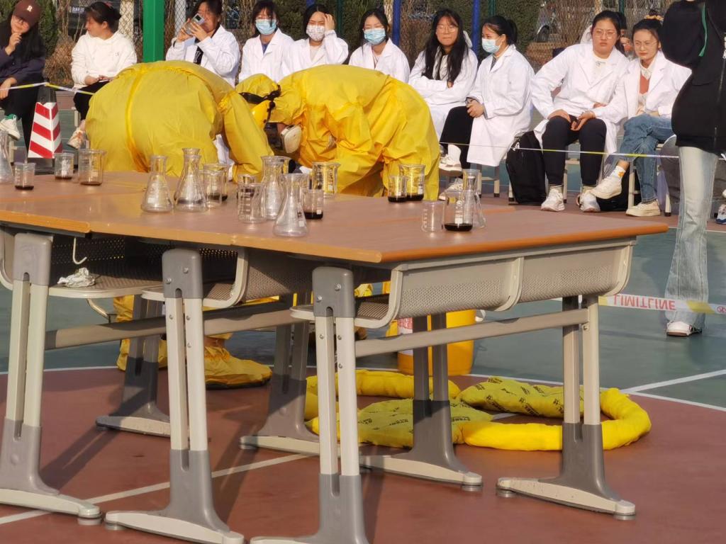 3月7日下午,在篮球场开展实验室化学品意外泄漏应急演练,副校长徐静出席活动并讲话。