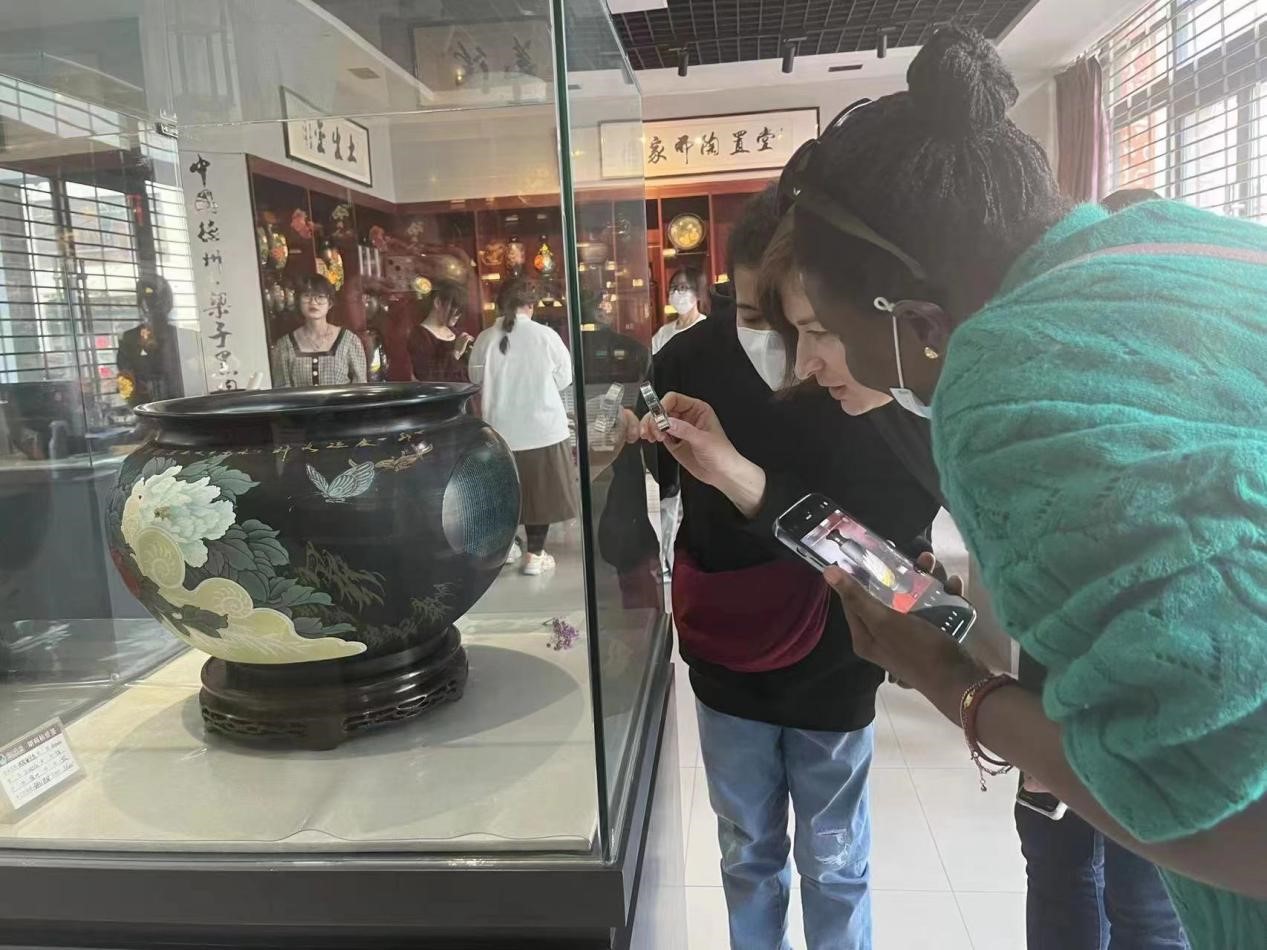此次活动以参观黑陶文化馆为起点,带领外籍教师领略德州地域文化的魅力。参观中,外籍教师认真聆听讲解员讲述黑陶文化的发展史,欣赏的同时也亲身体验黑陶制作过程,体验非遗技艺。