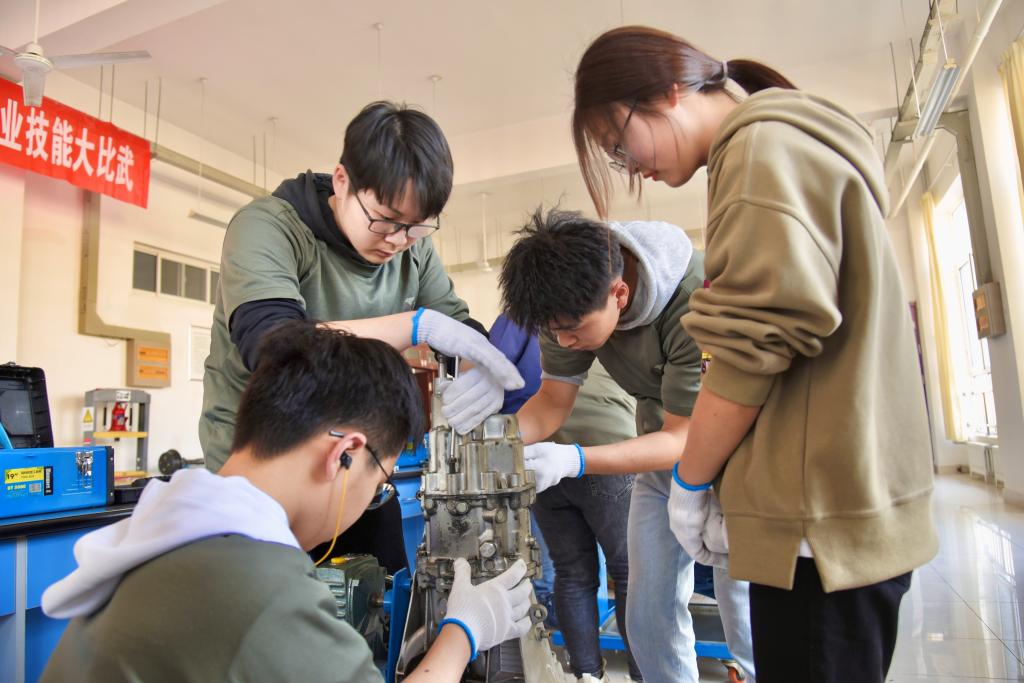 群雄聚集,相互切磋。比赛开始后,参赛选手充满激情,奋勇争先,协同合作,交流学习。汽车制造专业马洪新教授担任评委,并在现场给予安全指导。