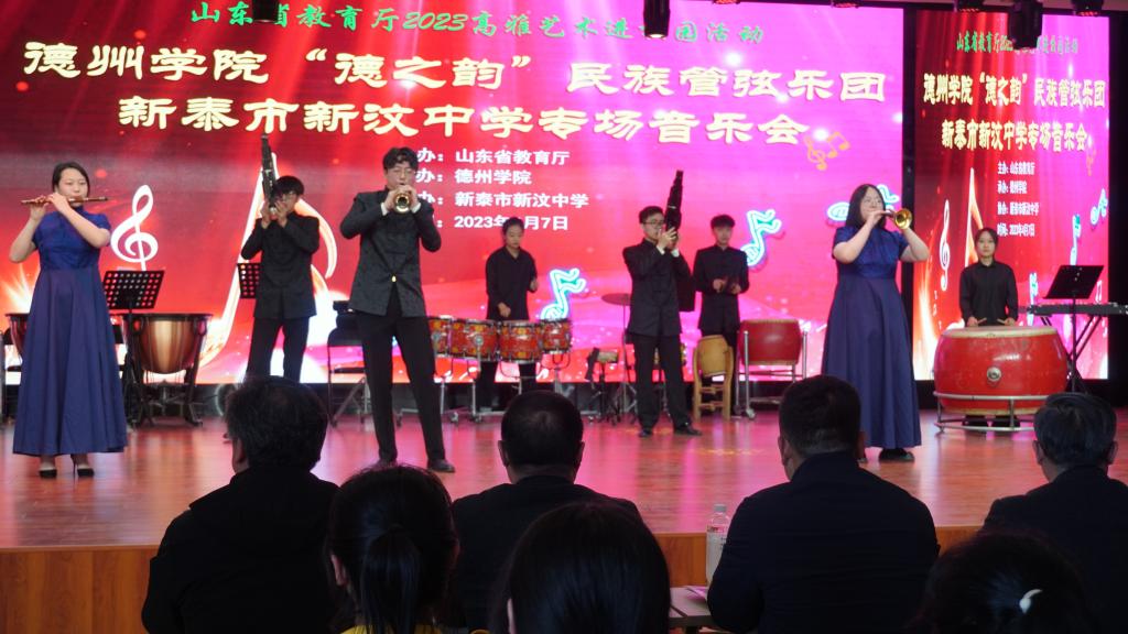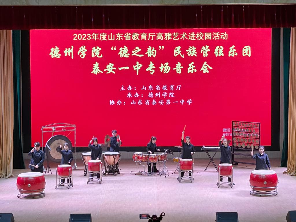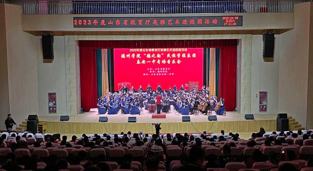 4月6日至9日,由山东省教育厅主办,beat365承办的“高雅艺术进校园”活动顺利开展,“德之韵”民族管弦乐团先后赴泰山护理职业学院、新汶中学、泰安第一中学成功举办了3场民族管弦乐专场音乐会。