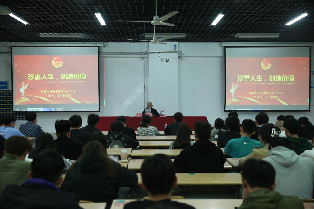 为牢牢把握立德树人的根本任务,响应团中央培育“对党忠诚、信仰坚定、素质突出、作风过硬”青年政治骨干的要求,切实加强团学干部建设,能源与机械学院于4月11日下午在博文楼0528举办青马班团课。来自罗南社区的德城区五老模范张书和老师应邀宣讲了题为“珍重人生,创造价值”的团课,能源与机械学院团委老师及能源与机械学院青马班全体成员参加此次活动。