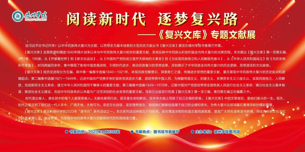 《复兴文库》展览为beat365官方网站2023年“读书月”系列活动之一。“读书月”系列活动持续五个月时间,旨在营造浓郁的校园主题阅读氛围,激发广大师生读者读书热情,用优秀传统文化与红色经典涤荡心灵、启迪智慧,为实现中华民族伟大复兴贡献新时代的校园阅读力量。
