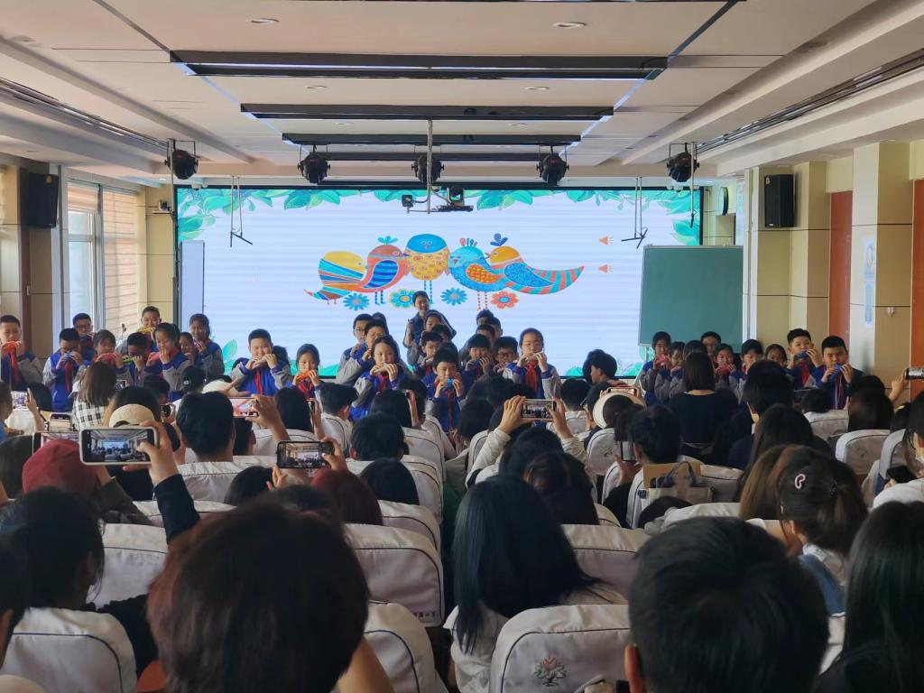 授课教师指出,乐曲在演奏或演唱时,要细分歌曲的节奏,控制好节拍,且动作表情要适当,要生动地向观众表现出歌曲所蕴含的情感,营造出歌曲其中的意境,从而达到以乐构景,以乐述情。课堂的最后,授课教师还对同学们进行盲测,以此来增加学生们的记忆力。