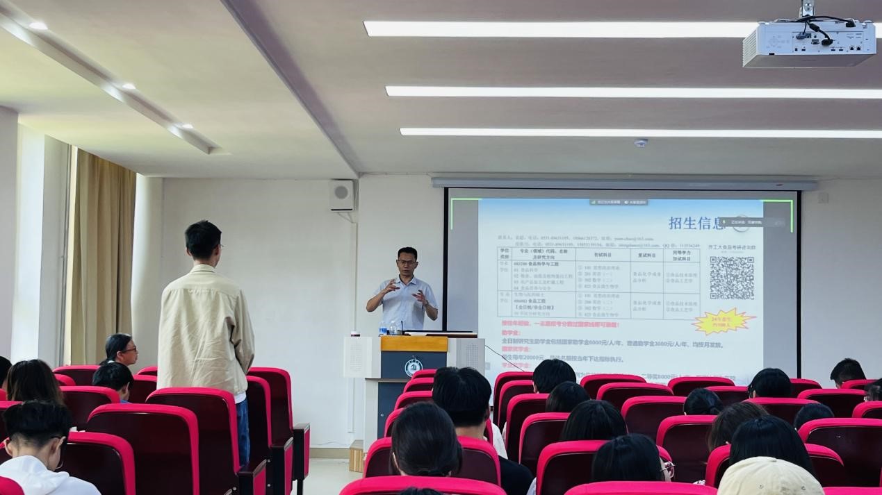 袁教授从食品科学的内涵、国内外食品发展现状、食品未来发展趋势等五个方面进行了讲解,并着重从食品基础研究的强化、食品制造的”绿色化“、传统食品的工业化等多个方面分析了我国未来食品的发展趋势。在互动交流环节,袁教授就食品相关学生创新创业选题、未来就业方向等问题进行详细的解答。此次讲座让同学们对食品科学的现状和发展趋势有了更加清晰的认识和了解,提高了同学们的专业的自信心,明确了今后努力的方向。