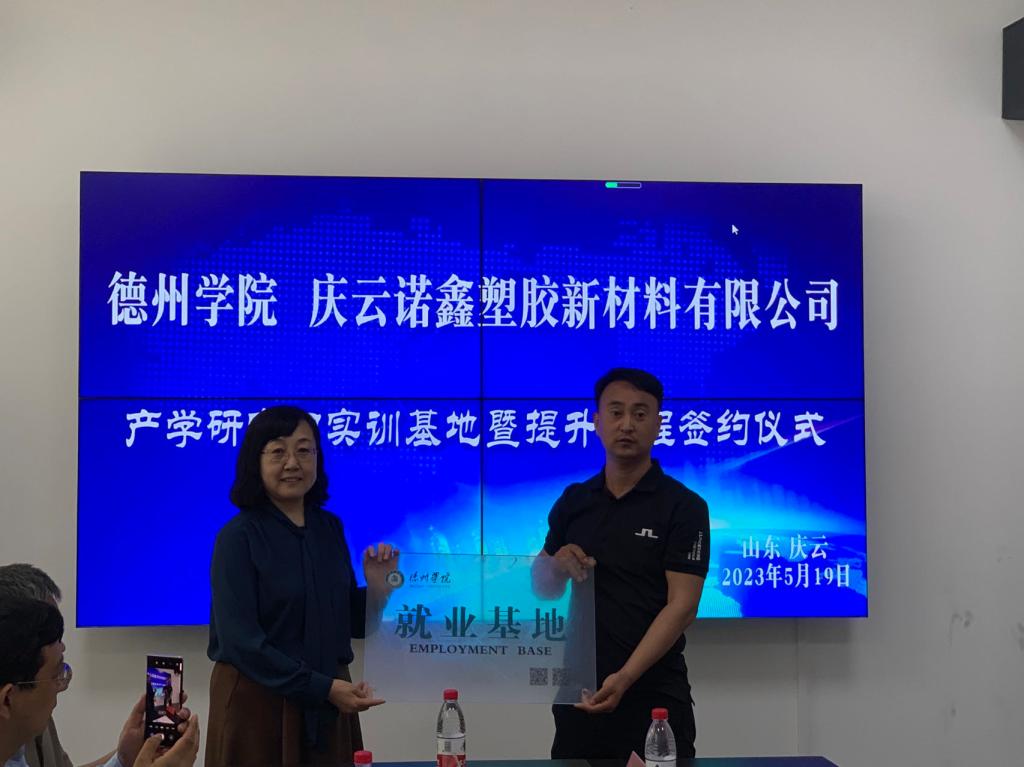 活动中,一行人实地参观了庆云诺鑫塑胶新材料有限公司的生产车间、新厂房建设和产品展区等,公司车间主任为学生讲解公司的主要产品。在座谈交流环节,第三教师党支部教师们分别介绍研究方向,希望通过本次活动,加强同庆云诺鑫塑胶新材料有限公司的技术交流,共同解决产品生产中的技术难题,并希望校企双方以党建为切入口,拓宽毕业生就业创业渠道、培养一批实干人才服务地方企业。公司主要负责人介绍公司的创业历程及相关的产品知识,希望双方不断深化务实合作,通过开展学生实习、毕业实践等一系列活动,加强同化学化工学院的合作。会后,化学化工学院与庆云诺鑫塑胶新材料有限公司进行就业实习基地的授牌仪式,并签订《beat365官方网站就业基地共建协议书》。