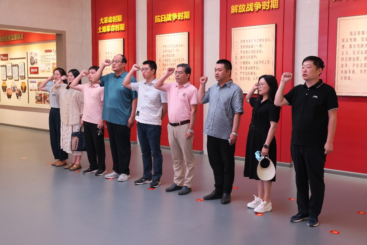 参观结束后,全体党员代表面对庄严的党旗,举起右拳,重温入党誓词,铿锵有力的宣誓声,表达了全体党员坚定政治信念和时刻不忘初心、矢志永远奋斗的坚定决心。通过此次参观学习,全体人员表示,在今后的工作学习中,要坚定理想信念,继承和发扬革命先辈坚忍不拔、顽强拼搏、勇往直前的大无畏精神,学习弘扬劳模精神、劳动精神、工匠精神,强化担当意识,不忘初心,砥砺前行,以高标准要求自己,勇于吃苦,甘于奉献,以实际行动发挥党员模范带头引领作用,认真落实主题教育各项要求,主动担当作为,奋力书写学院工作高质量发展新篇章。