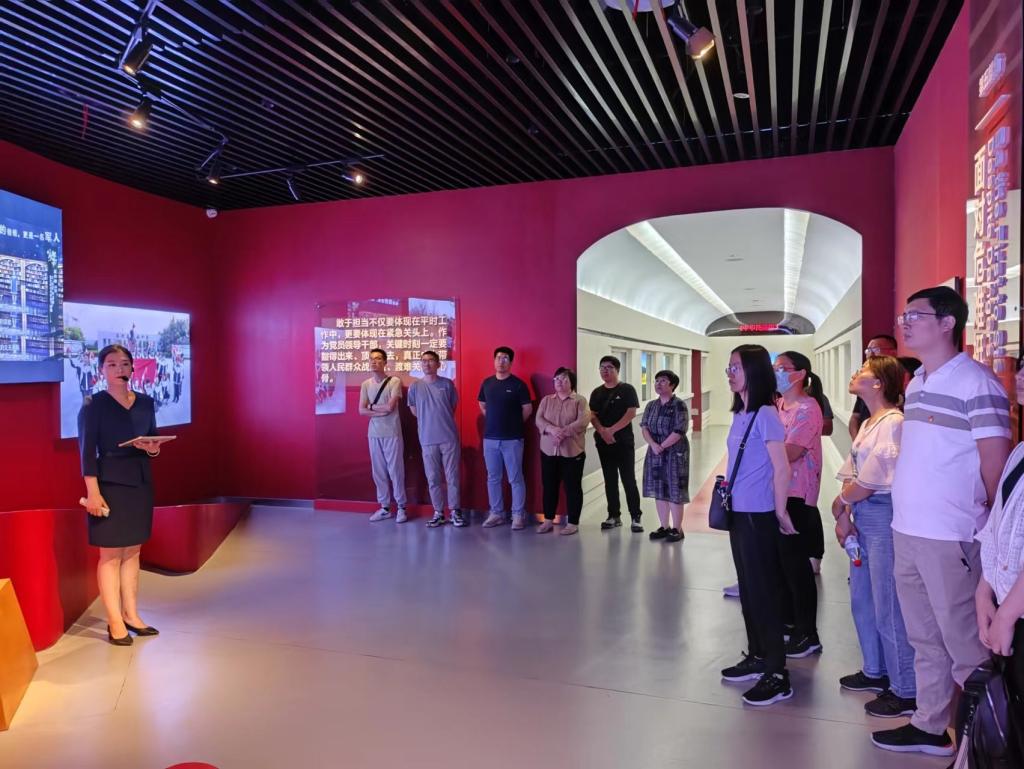 5月27日上午,beat365官方网站计算机与信息学院组织全体教师、党员赴齐河党员教育体验基地、劳模精神劳动精神工匠精神教育基地开展党性教育。党的历史是最生动、最有说服力的教科书。齐河党员教育体验基地内,讲解员带领大家学习参观不同主题的展厅,生动、鲜活地讲述着党史和人物故事。跟随讲解员的讲解,大家循着一幅幅照片、一件件展品,一幕幕场景,回顾学习了中国共产党在近现代历史上涌现出的好党员、好干部,同时缅怀了老一辈革命家的丰功伟绩,深切感受到了从先辈先烈身上汲取的信心和力量。参观结束后,全体人员在鲜红的党旗下,举起右手,握紧拳头,重温入党誓词,接受心灵的净化和洗礼。