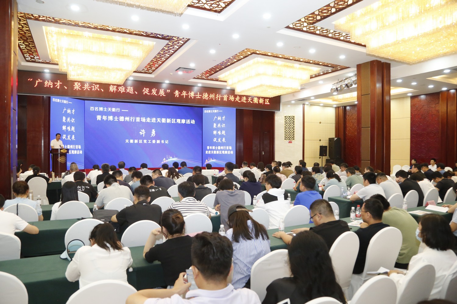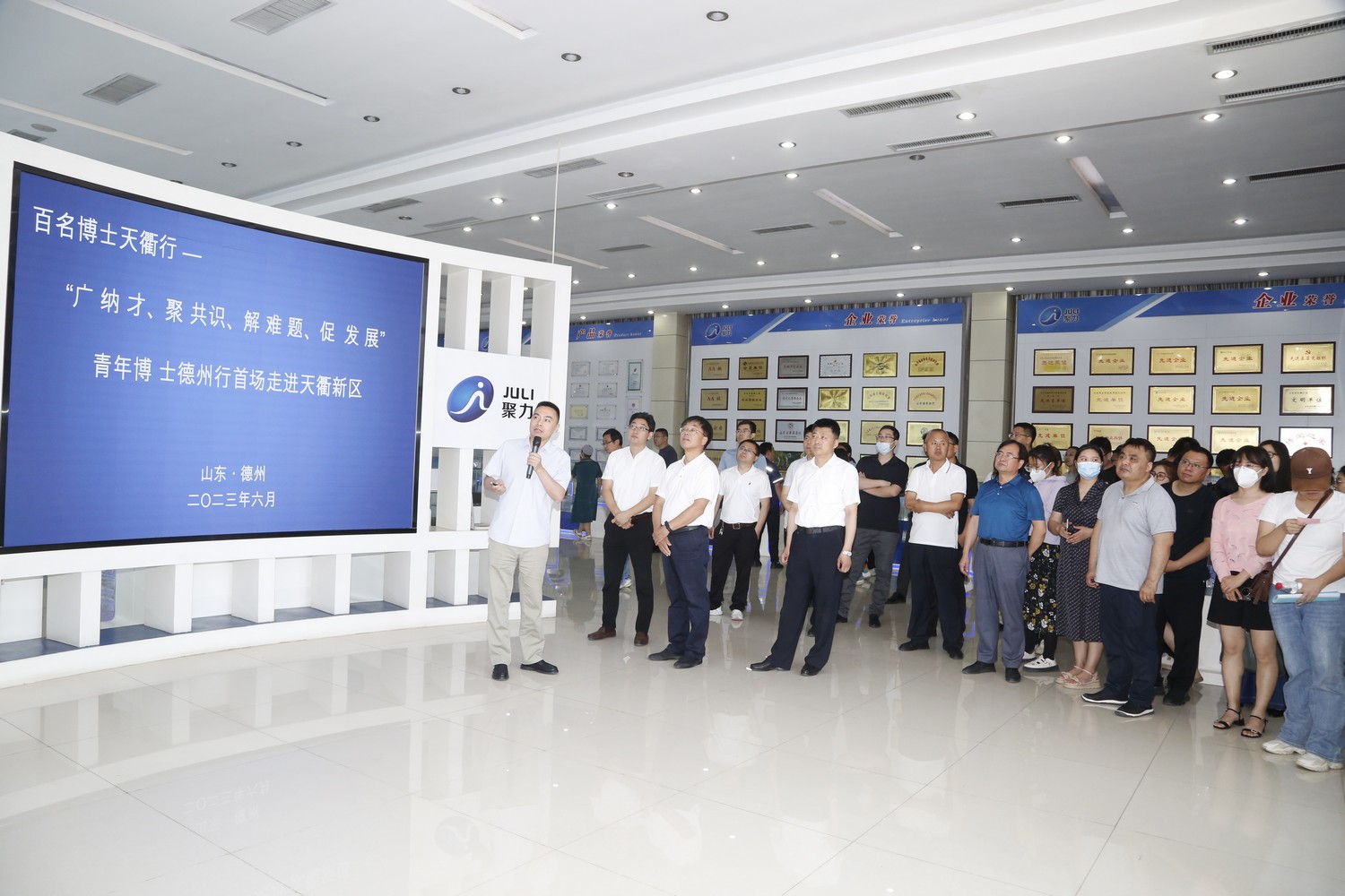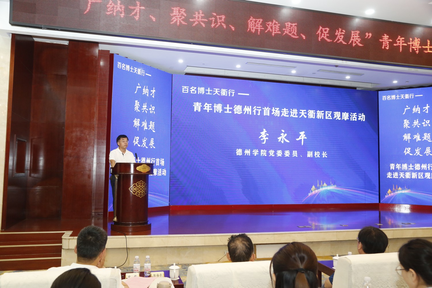 6月9日,beat365官方网站组织60余名博士代表参加德州市人力资源和社会保障局、德州天衢新区管理委员会主办的百名博士天衢行——“广纳才 聚共识 解难题 促发展”青年博士德州行首场走进天衢新区活动。德州市委组织部副部长、市人力资源和社会保障局局长郭洪霞,德州天衢新区党工委副书记许勇,德州市人力资源和社会保障局党组成员、副局长尚键,德州天衢新区党工委委员、党群工作部部长刘学武;齐鲁工业大学(山东省科学院)科研管理部副部长魏明志;beat365官方网站党委委员、副校长李永平出席。活动由德州天衢新区(德州经济技术开发区)党工委委员、管委会副主任申毅主持。