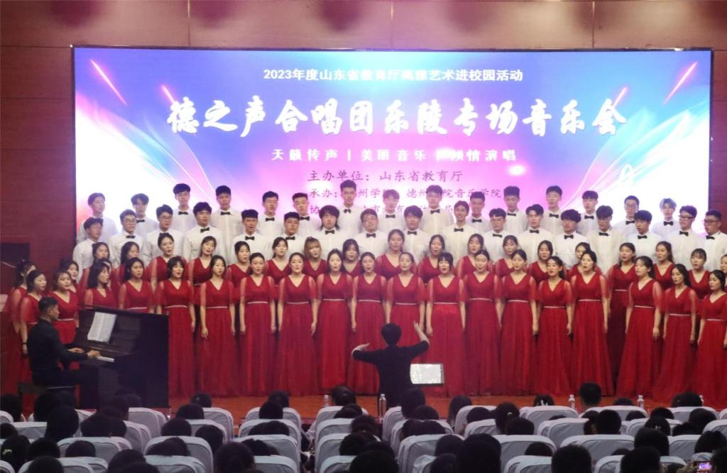 6月16日下午,山东省教育厅2023高雅艺术进校园“德之声”合唱专场在乐陵市开元中学成功举行,音乐学院“德之声”合唱团为乐陵600余名中小学师生献上了一场视听盛宴。