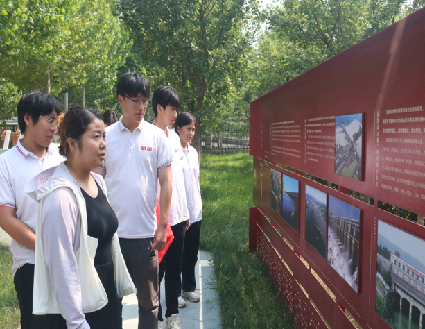 随后,实践队成员来到位山闸管所,由工作人员带领参观黄河文化展示园。行走在园区内,队员们深入了解位山引黄闸的建闸志、建设背景以及发展历史,通过查阅黄河流域分布图,学习黄河延绵、灌区纵横、滋润沃野、“惠泽聊城”的重大意义。