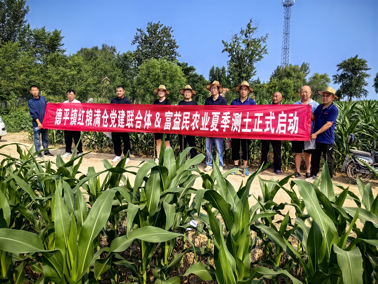 为提高农民科学施肥水平,促进粮食增产、农民增收,更好地助力乡村振兴,同时也是受全国人大代表、全国“十佳农民”和临邑县富民小麦种植专业合作社理事长魏德东的邀请,7月20日,生态与资源环境学院派出由4名专业博士组成的采样队并携带土壤样品采集工具,赴临邑县德平镇富民家庭农场参与“德平镇红粮满仓党建联合体&富益民农业夏季测土正式启动”活动。