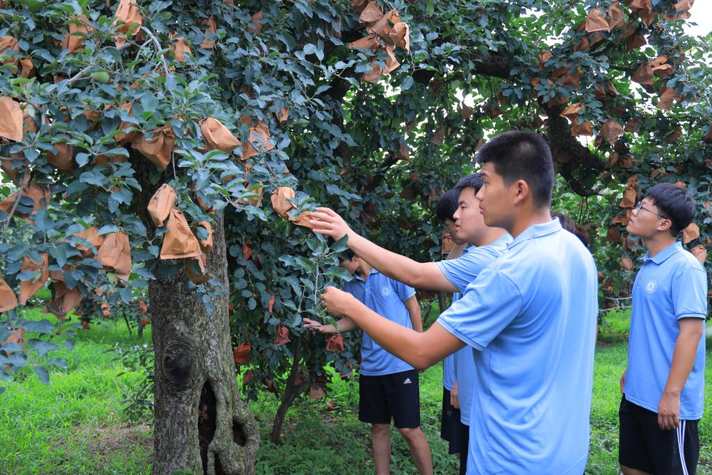实践团成员们来到烟庄实地参观了烟庄苹果古树观光园,这片苹果园是根正苗红的沂蒙山苹果的源头,是毛主席指示“沂蒙山区要大力发展苹果”后,1952年党中央从辽宁调来苹果苗发展而来,时称“北果南移”,这正是“烟庄1952”苹果的起源。留存至今的66棵老果树,见证了沂蒙山果业的富农之路。随着这批苗木繁衍发展,在省派第一书记协调推动下,烟庄村党支部领办合作社注册了“烟庄1952”沂蒙山果品商标。从当年的600株树苗到如今的3000亩果园,苹果树已经走进烟庄村的千家万户,苹果产业也成为了当地的支柱产业。团队成员走进果园,了解苹果产业的发展,感受革命老区的振兴蝶变。