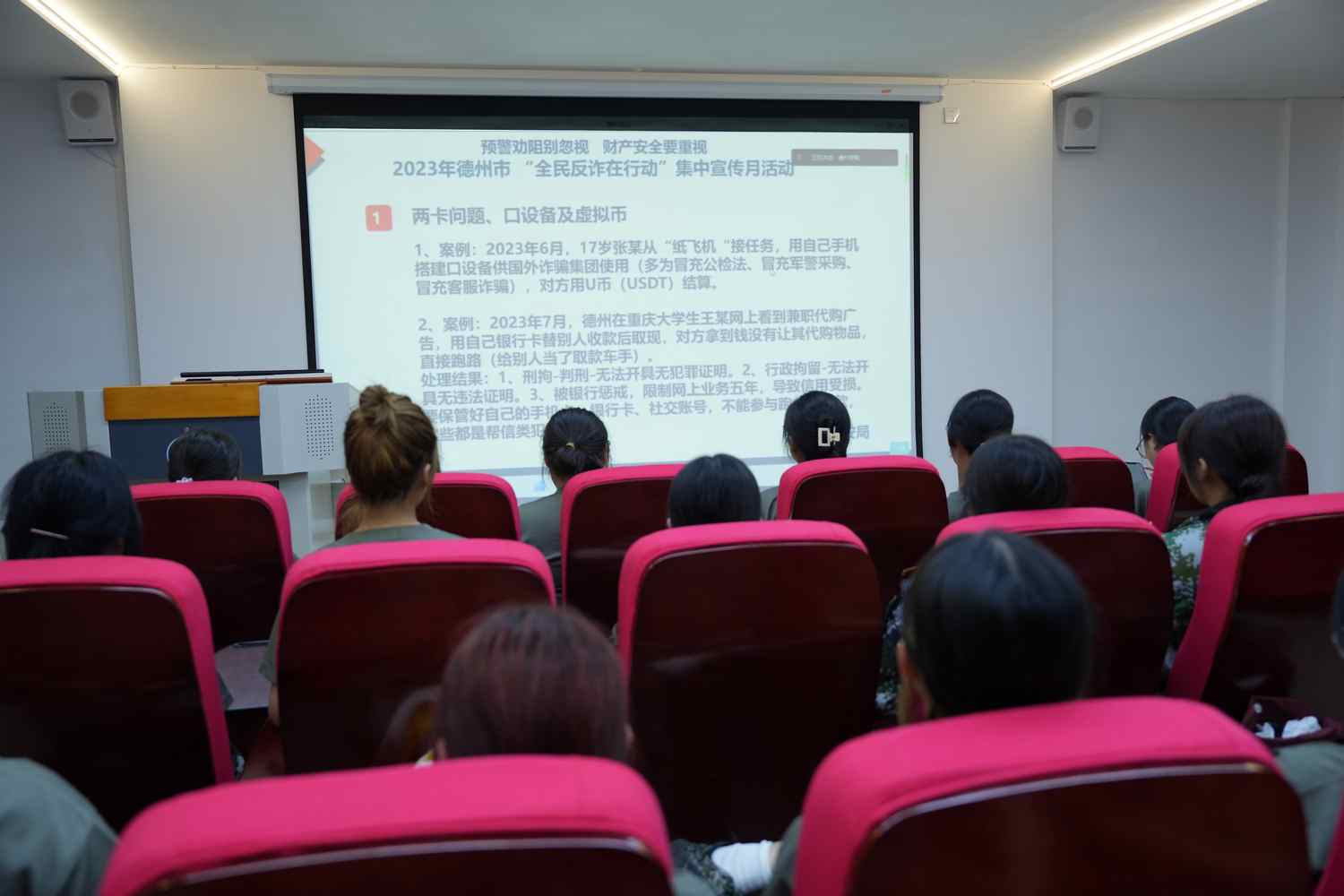 为进一步提高学生防范网络电信诈骗的安全意识和自我保护能力,结合2023年德州市“全民反诈在行动”集中宣传月活动,9月8日晚,邀请德州市公安局德城分局新型犯罪研究作战中心,二级警长娄斌警官为2023级新生做反诈宣传报告。