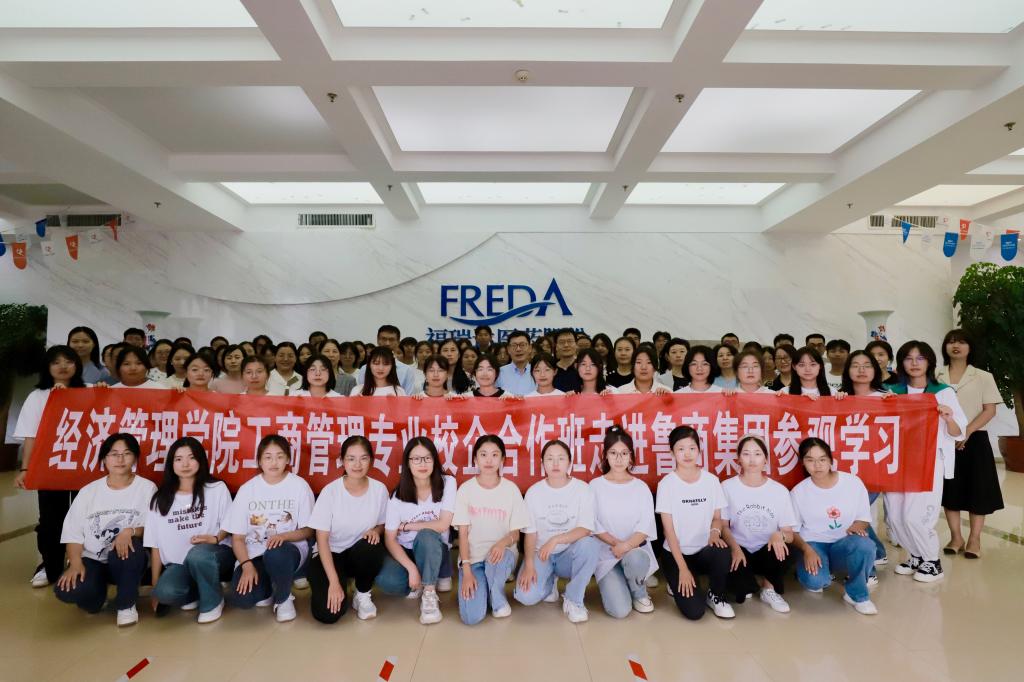 经济管理学院师生先后参观了鲁商科技数字化创新体验中心和山东福瑞达医药集团有限公司。公司驻校辅导员为同学们讲授了专业认知课,就同学们关心的专业、职业话题进行了充分交流探讨。学院负责人与鲁商教育控股主要负责人就校企合作双元人才培养模式的具体实施、学生实习实践落地、产学研深度融合等问题进行了座谈。