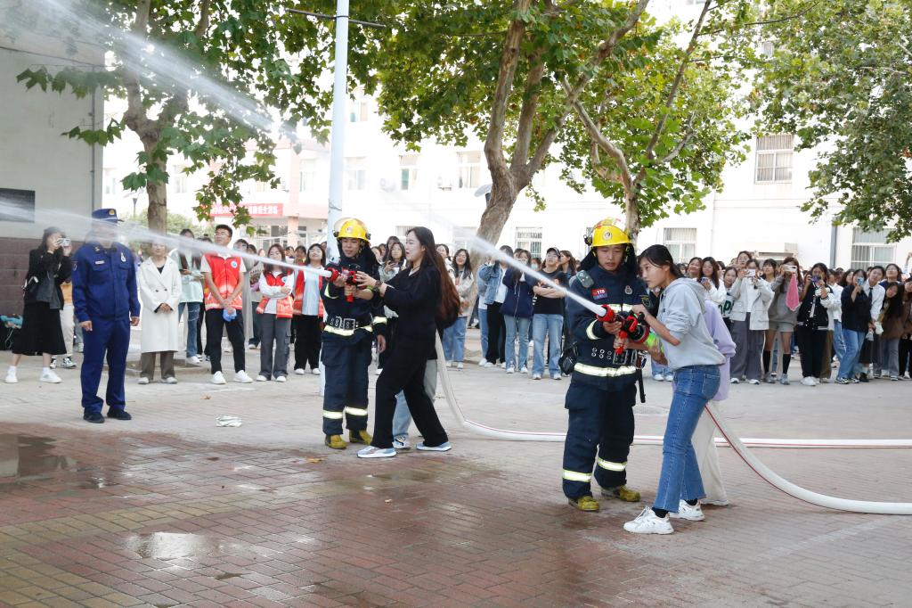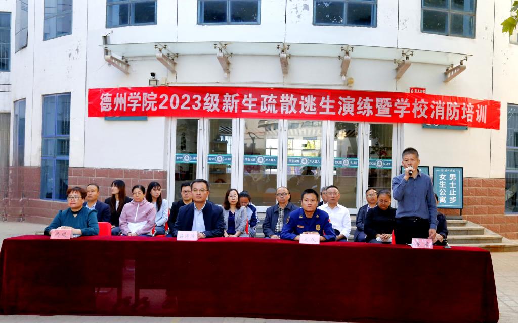 为切实增强广大学生的安全意识,提高应急避险和自防自救能力,10月10日下午,学校组织开展了2023级新生疏散逃生演练暨学校消防知识培训活动。学校党委委员、副校长蒋涛涛,德州市德城区消防大队大队长刘斌,学校党委委员、宣传部部长冯琨出席此次活动。