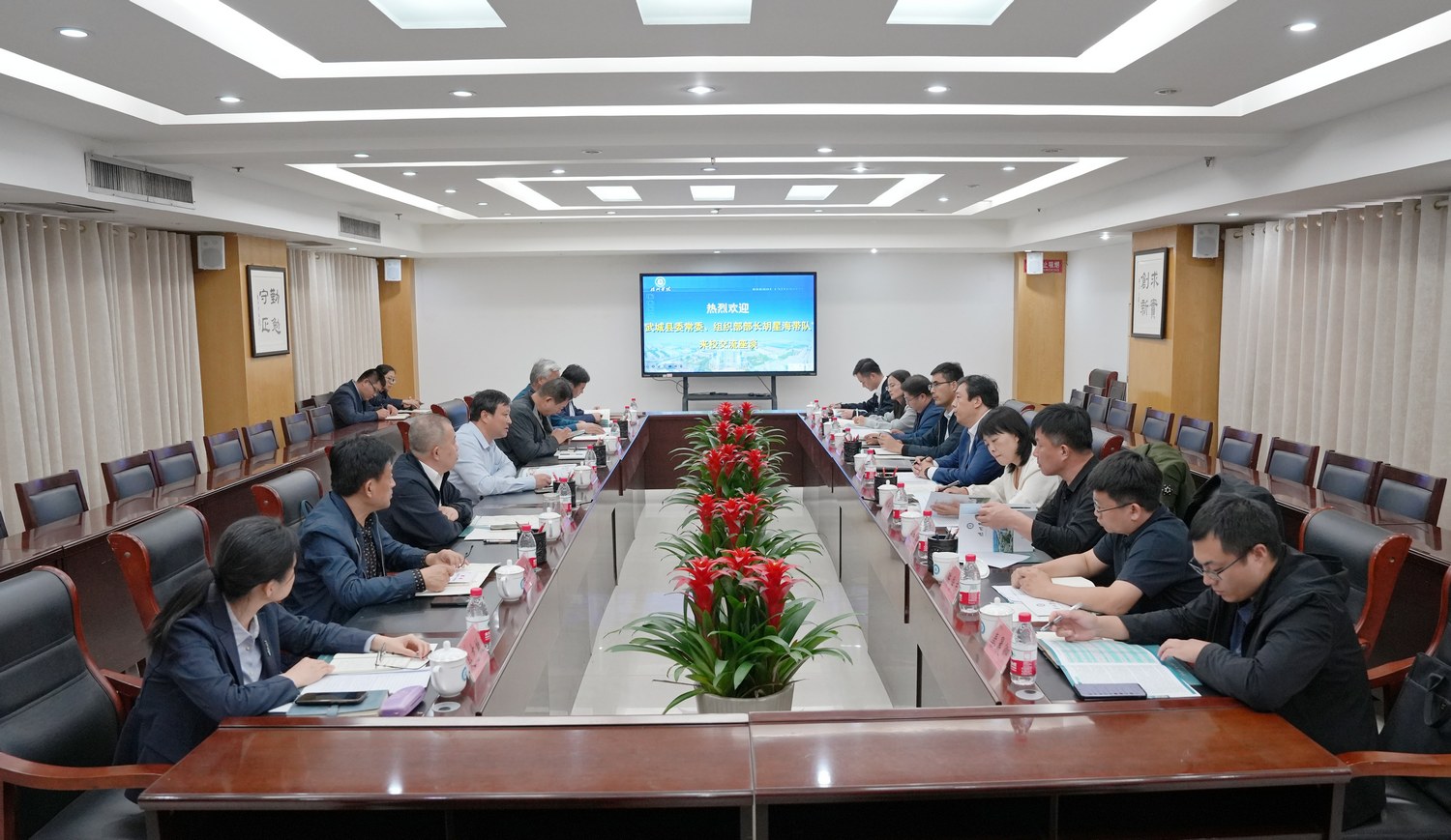 10月19日下午,武城县委常委、组织部部长胡星海,组织部副部长、县人社局党组书记、局长刘东梅,科技和工业信息化局党组书记、局长范忠新一行来校就校地合作事宜进行对接。党委委员、副校长李甲亮与来访客人进行了座谈。