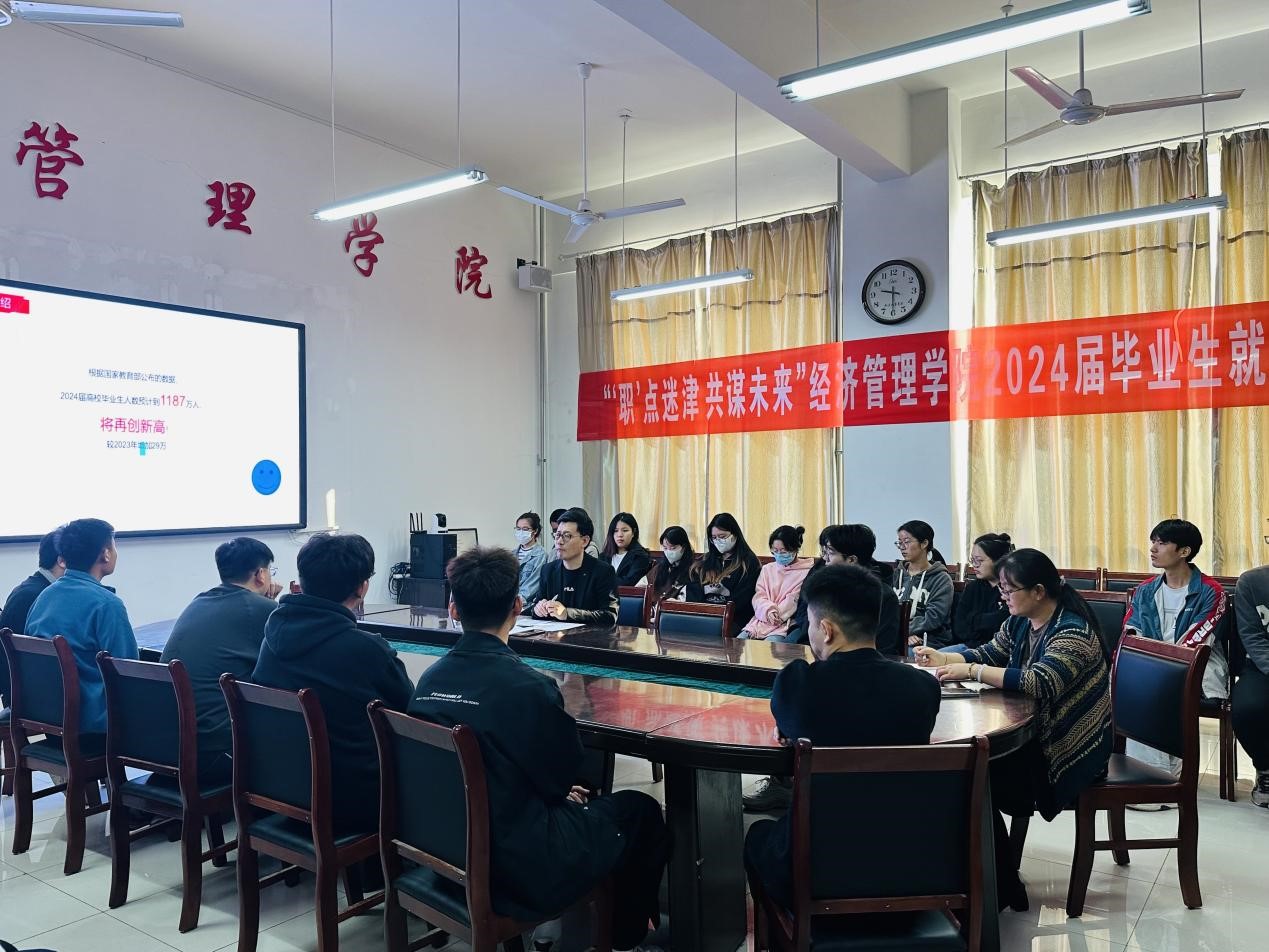为了解毕业生就业需求,助力大学生就业,帮助青年学生树立正确就业观念、提升就业和创业技能。10月28日,经济管理学院举办“‘职’点迷津,共谋未来 ”2024届毕业生就业座谈。此次座谈会系我院“就业育人”项目的重要一环,也是“团团帮扶计划”系列活动之一。学院党委书记、就业指导教师及2024届毕业生代表参加了此次座谈会。