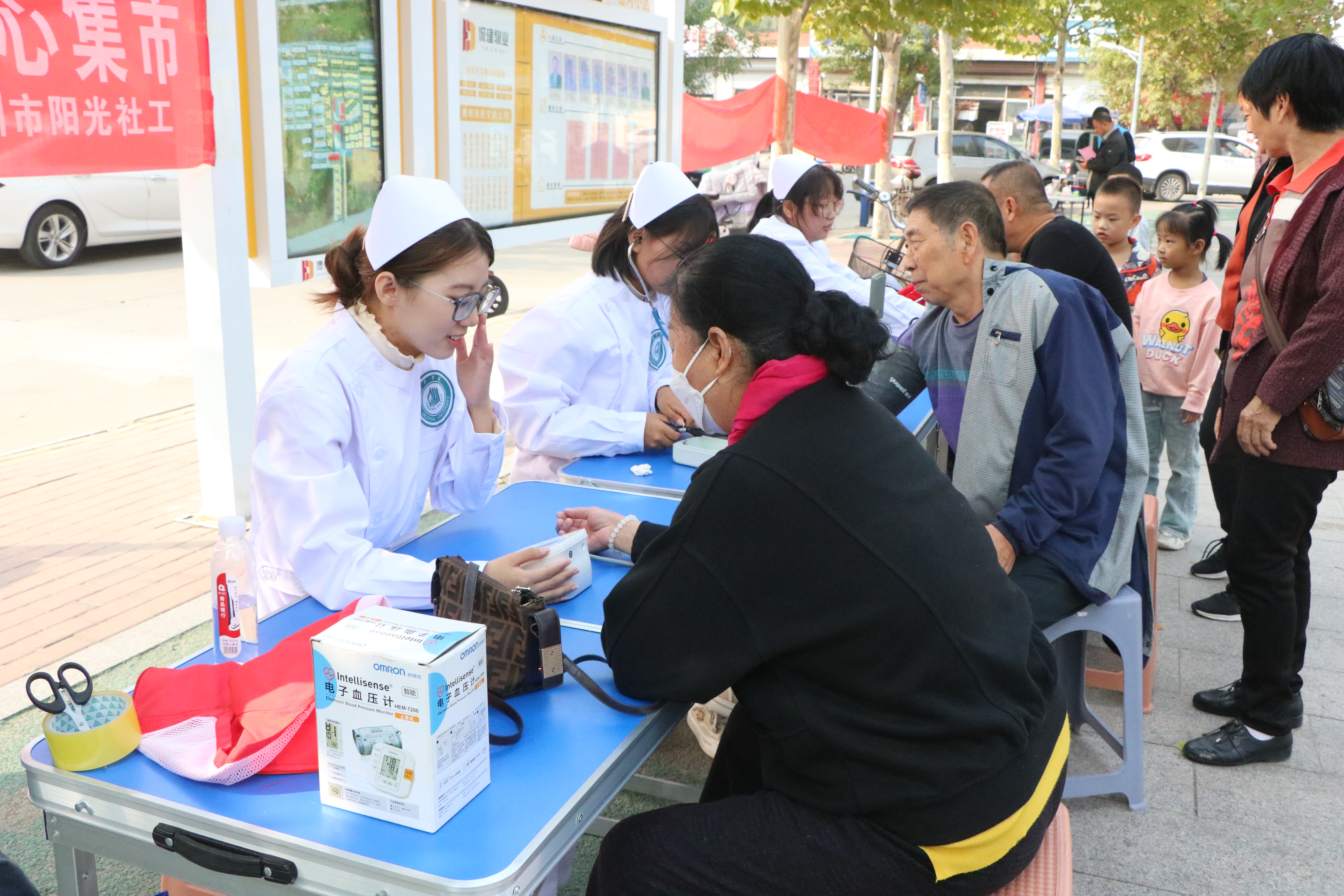 活动伊始,活动负责人引导志愿者们参观社区,了解社区文化,为志愿者下一步更好地对接社区实践打下基础。活动中,志愿者为社区老年人举办生日会,为他们表演太极拳,与老人在其乐融融的氛围中一同享用生日蛋糕与长寿面,使老人们感受到满满的幸福感。同时,志愿者充分发挥专业优势,为社区居民举办义诊活动、提供健康咨询,并为老人讲解控制血压的方法和秋冬健康小常识。活动最后,志愿者陪同老年人一起练习了八段锦,进一步丰富社区文化,提升社区居民的身体素质和健康意识。