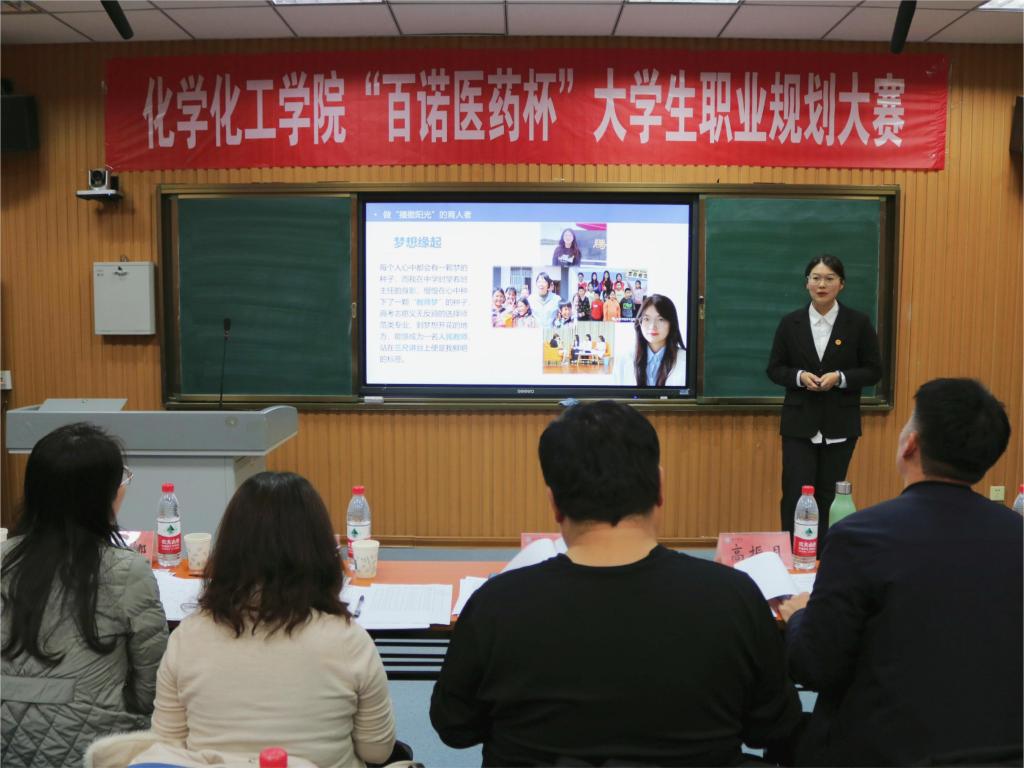 为贯彻落实学校《关于举办beat365官方网站大学生职业规划大赛的通知》要求,加强学生生涯教育和就业指导,引导学生树立正确的成才观、就业观和择业观,提升学生就业竞争力,11月13日,化学化工学院联合百诺医药集团于厚德楼413教室举办了“百诺医药杯”大学生职业规划大赛决赛,就业指导处副处长、百诺医药集团相关负责人、化学化工学院党委书记、副书记及辅导员担任本次大赛评委,70余名学生代表到场观摩比赛。