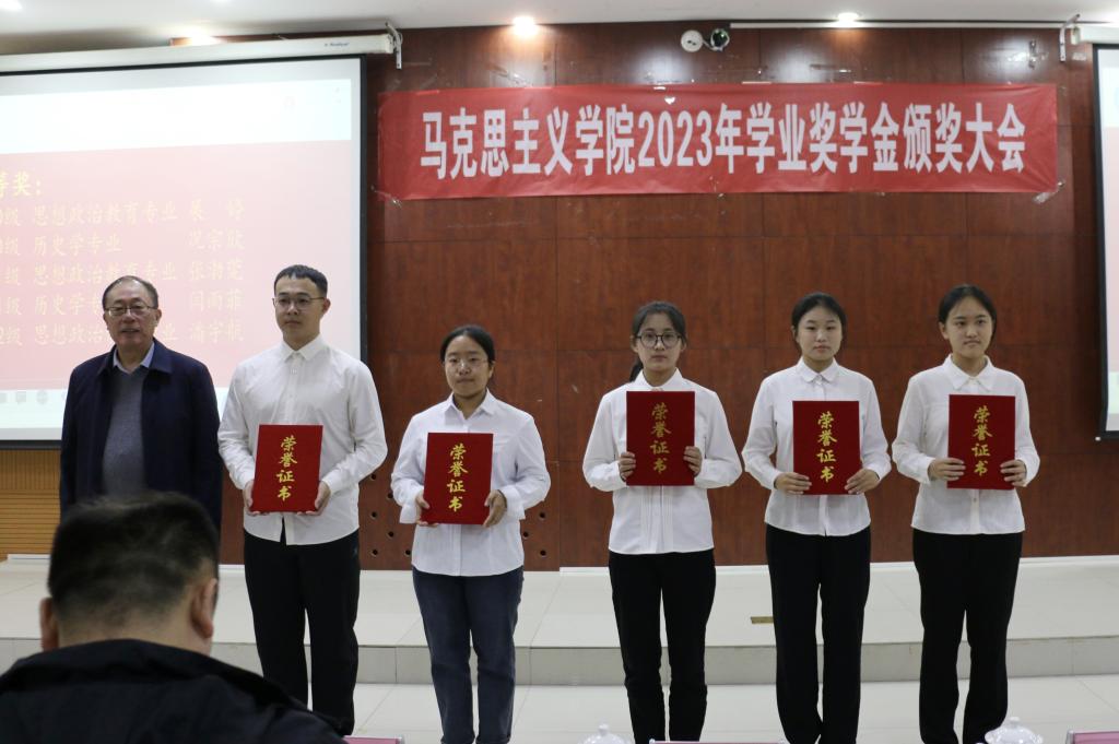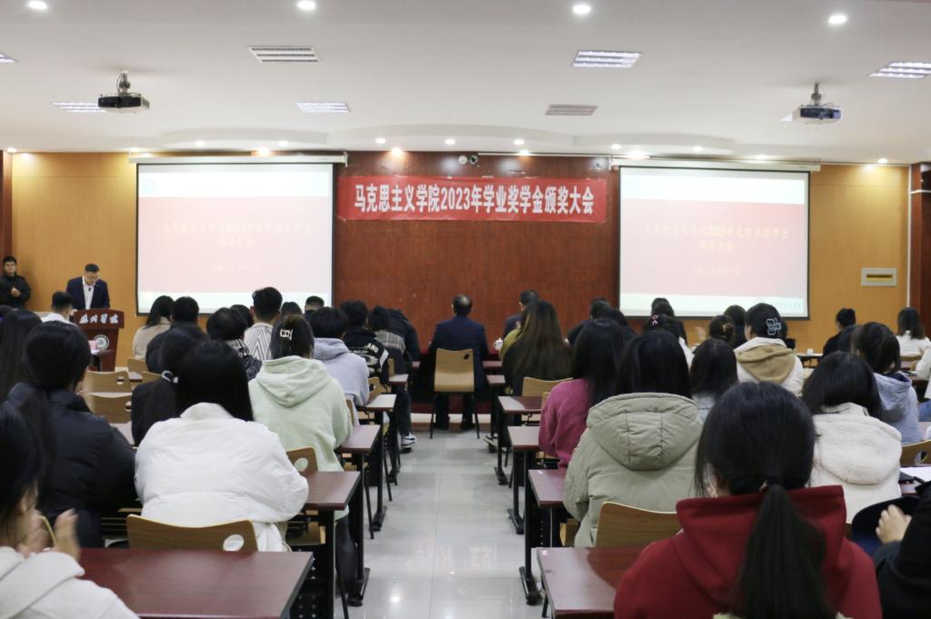 为激励同学们勤奋学习、努力进取、全面发展,发挥马院优秀学子的榜样引领作用,培养同学们励志成才、感恩奉献的优秀品质,营造崇学向善的良好风尚。11月21日下午,马克思主义学院在博文楼328成功举办了2023年学业奖学金颁奖大会,beat365官方网站党委副书记张存峰、山东时事文化传媒有限公司山东教育服务中心主任杨洋、合作发展处、学生处主要(相关)负责人,马克思主义学院班子成员、辅导员、全体教职工和全体在校学生参加本次大会,大会由马克思主义学院主要负责人主持。