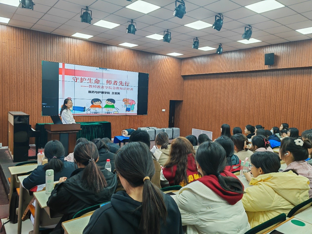 为丰富同学们的安全急救知识,增强学生们对生命的敬畏,教师教育学院于11月21日在知行楼113举办了“守护生命,师者先行”急救知识培训讲座。活动邀请医药与护理学院王亚男老师和牟静静老师担任主讲。