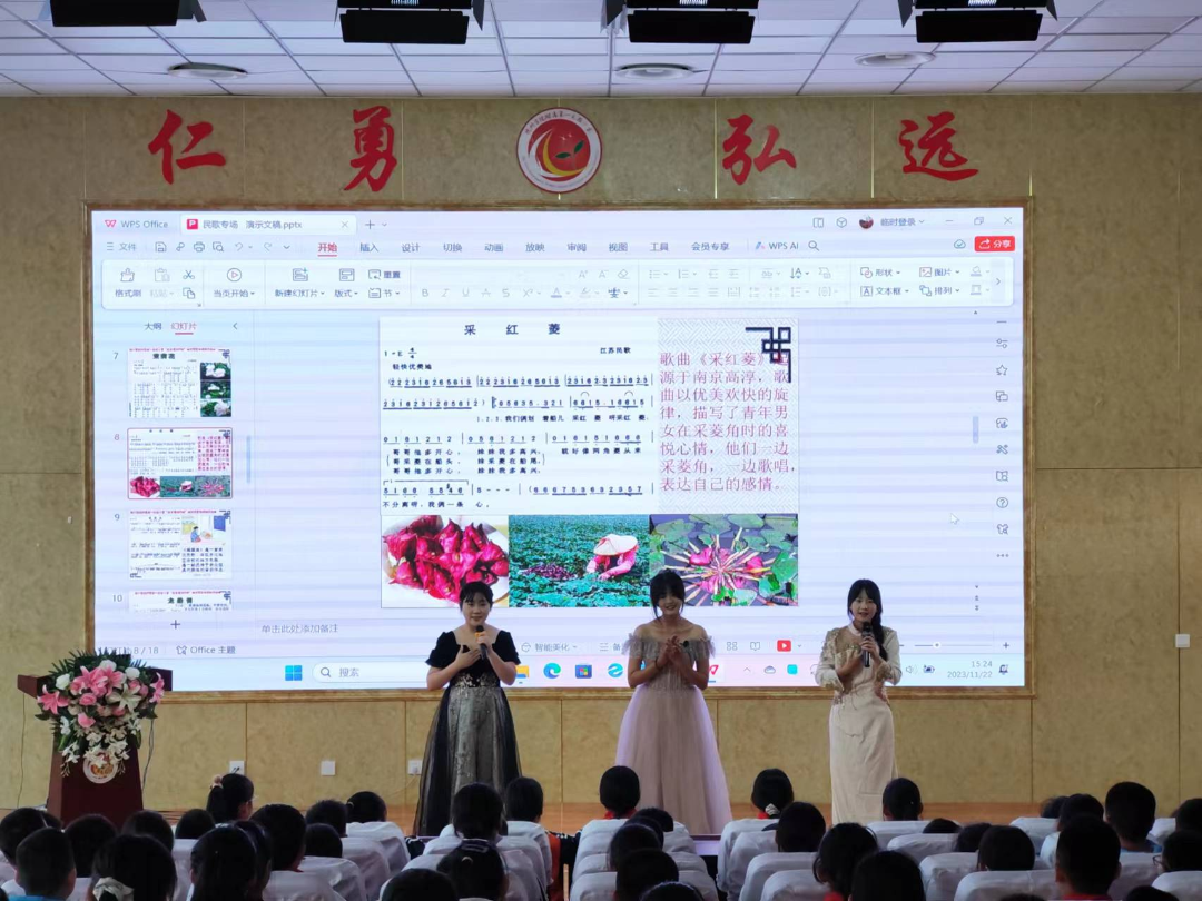 11月22日下午,音乐学院杜乡老师带领部分师范生到beat365官方网站附属第一实验小学举办了“民歌传唱进校园,文化传承润童心”地方民歌专场音乐会,300多名五年级小学生观看了演出。