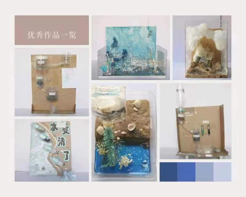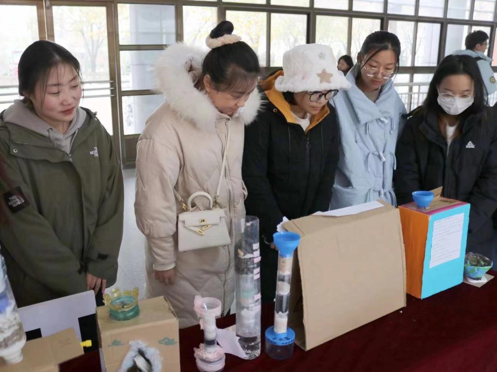 大赛以绿色环保、保护水资源为主题。参赛同学利用塑料瓶、废纸箱、纱布、洗脸巾、碳、砂石等废弃材料,严格按照净水工艺和流程,制作了净水器、净水模型等。大赛共收到来自19个学院的100余件作品,经过三轮评审,《水变清了》《花海》等27项作品突破重围,最终评选出一等奖6项、二等奖9项、三等奖12项。获奖作品在求实楼一楼大厅展出,获得了师生的广泛关注和一致好评。