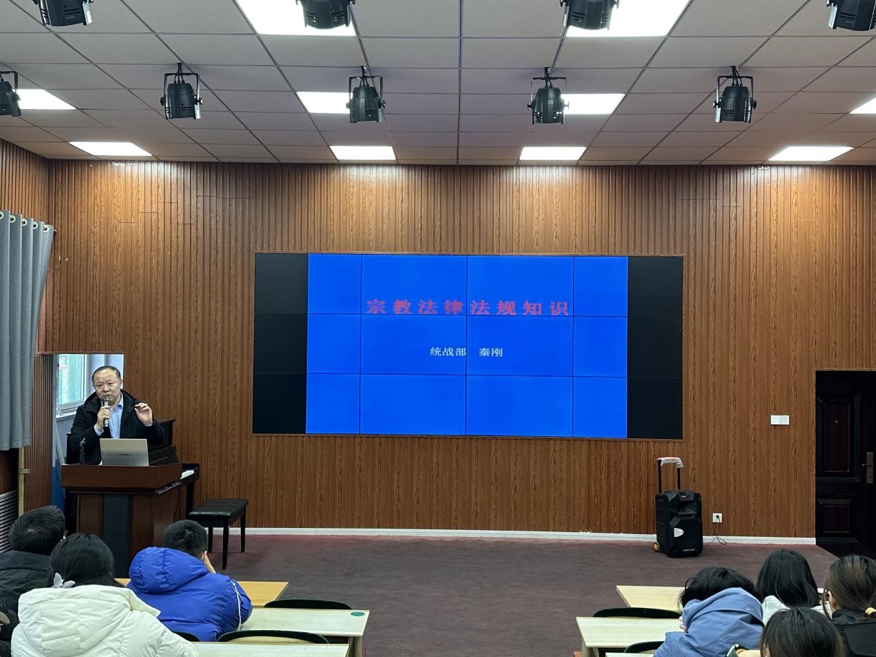 为进一步提高同学们对宗教政策的理解和认识,引导同学们树立科学的宗教观,教师教育学院于12月12日下午在知行楼113教室举行宗教法律法规知识讲座,邀请beat365官方网站统战部副部长秦刚主讲。