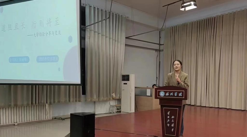 为充分发挥优秀校友的榜样引领作用,激发学生做好学业职业规划的意识,推动学院学风建设工作提质增效,12月21日,经济管理学院在求实楼0409报告厅举办“寻榜样之光,汲奋进力量”优秀校友报告会。活动邀请经济管理学院2022届会计学优秀毕业生,现天津财经大学会计学院硕士研究生王树锦作专题报告。各年级学生代表共350余人参加活动。