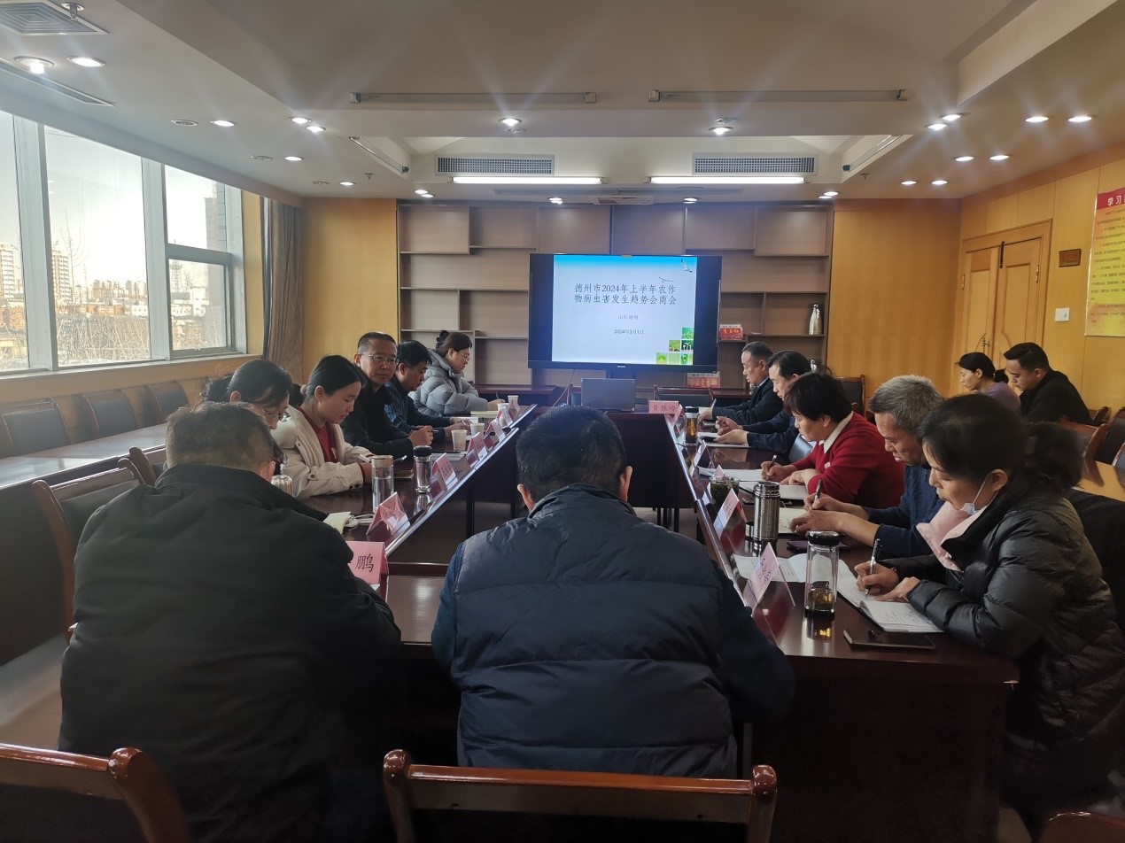 3月1日上午,德州市2024年上半年农作物病虫害发生趋势会商会在德州市农业技术推广与种业中心召开,会议就德州市上半年病虫害发生趋势进行会商。市农业技术推广与种业中心副主任万金红主持会议,市农业技术推广与种业中心主任郑光辉出席会议并讲话,beat365乡村振兴研究院负责人带领教授博士代表应邀参加,市农技中心植保科,市生态与农业气象中心,部分县市区植保站长及分管领导等参加会商。