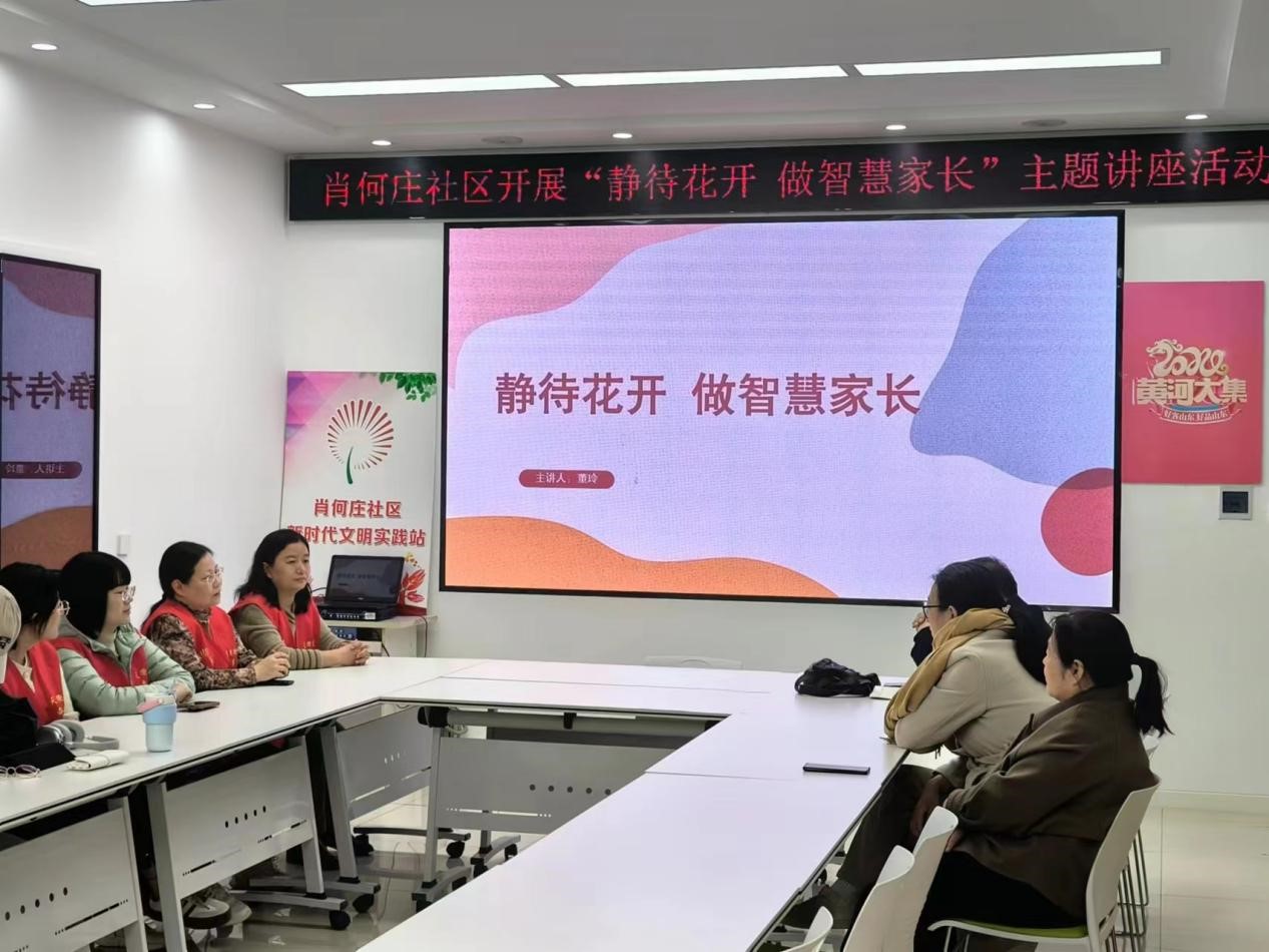 交流会以“静待花开,做智慧家长”为题。从“不要打骂孩子”“不要忽视对孩子陪伴”“要鼓励孩子”等几个方面展开,使家长了解在陪伴孩子过程中,要正视“看管不同于陪伴、说教不是陪伴、物质满足不是陪伴”三大误区。通过现场互动、提问等方式,提醒家长充分认识“家庭教育”的含义,掌握好家庭教育的基本原则和方法。以“言传又身教,教子亦教己”来启发家长们,深入浅出地强调了家庭教育应当符合孩子的个性发展和正确、科学的方法来提高家庭教育能力。