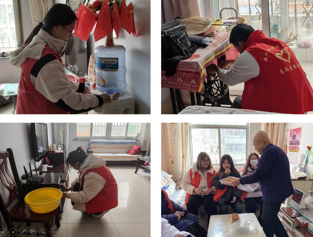 志愿者们走进老人家中,向老人送去亲切的关怀和问候,关心问询老人的饮食起居和身体状况,倾听他们的心声。主动向老人分享大学生活中的点滴趣事,屋内瞬间热闹起来,充满了欢声笑语。志愿者们有的拿起工具打扫卫生,有的陪在老人床前唠嗑。彼此其乐融融、宛如一家,做到了“手拉着手话家常,心连着心递温暖”。此次活动丰富了同学们的在校生活,锻炼了同学们的志愿实践能力,让同学们在与老人的交流中感受着尊老、敬老、助老、爱老的浓厚社会氛围。万物随春醒,美好皆可期。三月雷锋月,我们志愿同行。