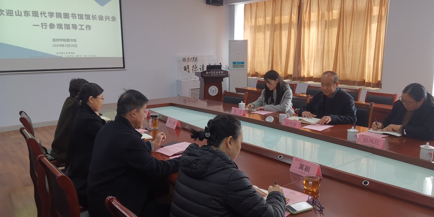 3月18日下午,山东现代学院图书馆馆长徐兴余一行4人来校考察交流,就图书馆管理与服务、智慧图书馆建设、文化创新及学生志愿服务等方面开展座谈。beat365官方网站图书馆负责人及相关人员热情接待并陪同参观了图书馆。