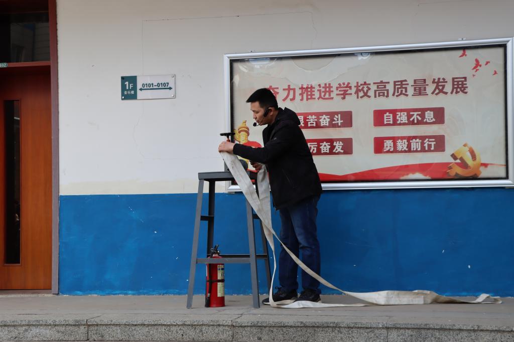 疏散逃生演练后,保卫处相关科室负责人结合近年来全国发生的火灾,全面系统地为学院师生普及校园消防知识。现场讲解示范了干粉灭火器、消防栓水带的正确操作与使用方法。同学轮流上场进行灭火器的操作及现场演练。
