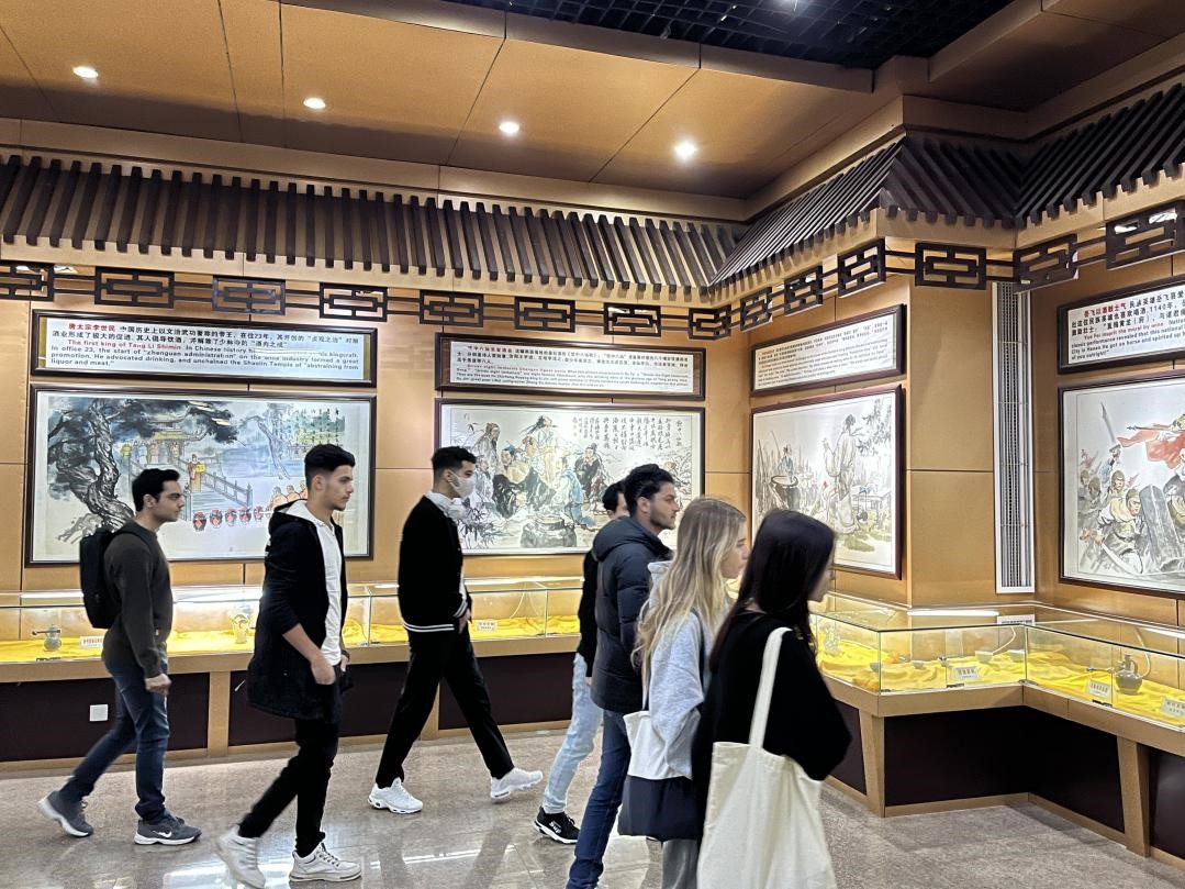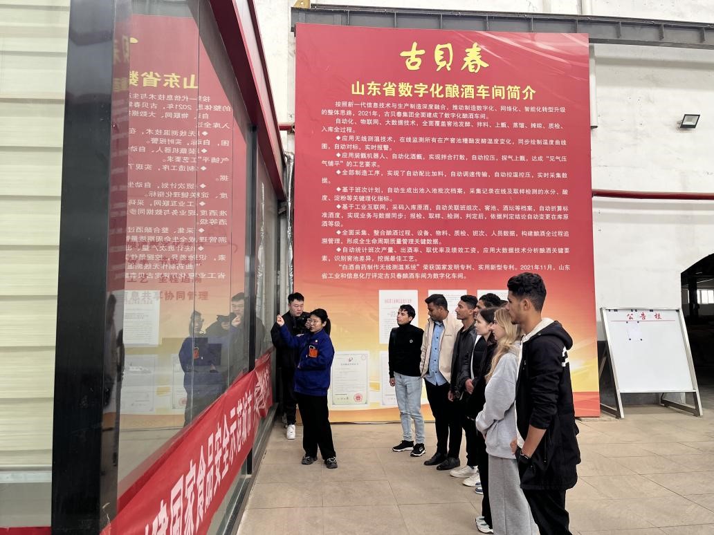 接下来留学生来到了古贝春集团。在酱香型生产车间参观走廊,留学生们近距离地参观了车间、酒库的全貌以及工作场景;在数字化酿酒车间,新一代信息技术和传统生产技艺的深度融合令留学生们印象深刻;在古贝春酒文化馆,留学生们从酒源探寻、古贝史话、公司掠影、工艺展示、酒道一览五个方面集中领略了古贝春企业文化和历史悠久、享誉世界的中华酒文化。