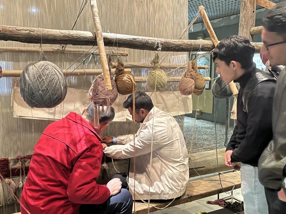 此行第一站来到了武城县神龙地毯博物馆。在这里,讲解员向留学生们展示了中国地毯文化艺术三千多年的发展历程以及神龙地毯艺术发展的新成就。在讲解员的引导下,留学生还体验了传统手工编织工艺和流程。他们表示,只有在这里才能有这样独一无二的体验,这对他们来说是非常珍贵的经历,同时精美绝伦、内涵丰富的地毯工艺品也让他们赞叹不已。