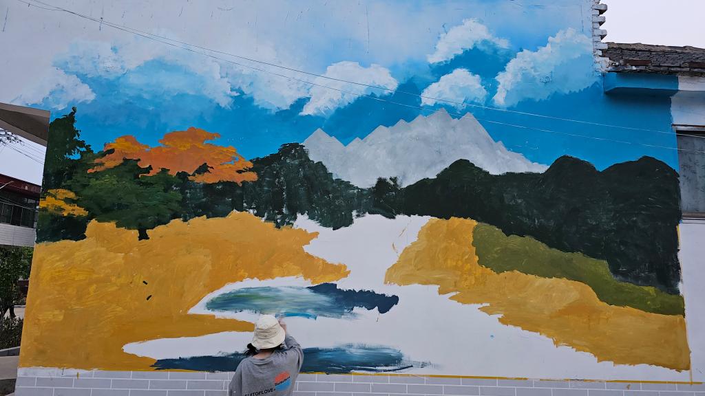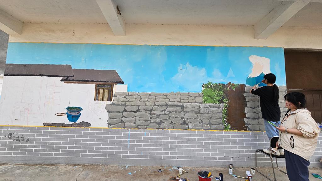 经过两天的努力,原本空白的墙面焕发出新的生机与活力。当墙绘艺术的创意与五彩缤纷的颜料相互碰撞,一幅幅栩栩如生的画面跃然于墙上,整个村庄充满了积极阳光、温馨美好的生活气息。志愿者们用巧手匠心点缀白墙灰瓦,用所知所学展现美丽乡村,为乡村振兴贡献青春力量。
