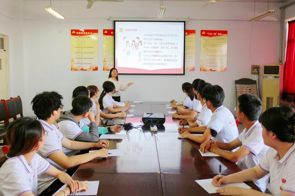 5月6日,化学化工学院团委于求实楼504会议室举办传承五四精神暨青春思政课,开展爱国主义教育。学院团委书记主讲,20余位团干部参加。