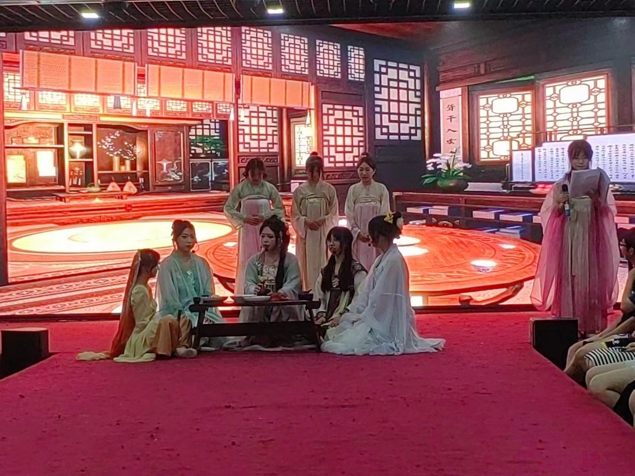 一曲悠扬的古风歌曲拉开了序幕,演员们身着飘逸的汉服翩翩起舞,仿佛将观众带入了华丽场景的古代宫廷。此外,还安排了笄礼、冠礼和拜师礼等传统仪式,让现场观众亲身感受到了中华传统文化的庄重与典雅,话剧表演更是将爱国青年的英雄故事生动地呈现在观众面前。